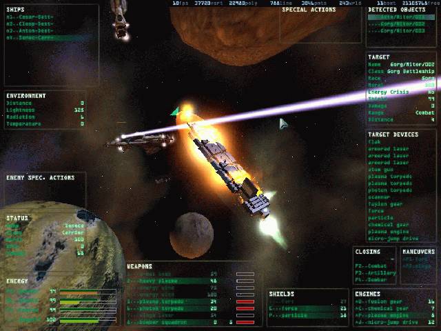A Philos Labs fejlesztésében hazánkban készülő Imperium Galactica III: Genesis űrstratégiáról már többször is írtunk magazinunk oldalain. Vámosi Zsolt egy harci ütközetet demonstrált nekünk, mely során játék közben is megcsodálhattuk a játék engine-jét. Ami pedig fantasztikusan szépre sikeredett. A csata pedig különösen látványos volt, lézerekkel, robbanásokkal és egyéb elemekkel. Mivel sajnos egyikünk se volt rajongója az űrstratégiáknak - inkább az Escape from Alcatrazra lettem volna személy szerint kíváncsi, de sajnos azt nem láthattuk -, így elsősorban ez maradt meg bennünk a programból. Zsolt jobbra-balra húzogatta az egeret, és kattintgatott szorgalmasan, melynek eredményeként egymás után kerültek megtámadásra és legyőzésre az ellenséges űrhajók. Mindeközben a képernyő tele volt mindenféle információval, az űrhajók páncélzatától kezdve a nevükig. Az év végén megjelenő játékról többet korábbi interjúnkban olvashattatok. [GAME:Imperium Galactica III: Genesis]