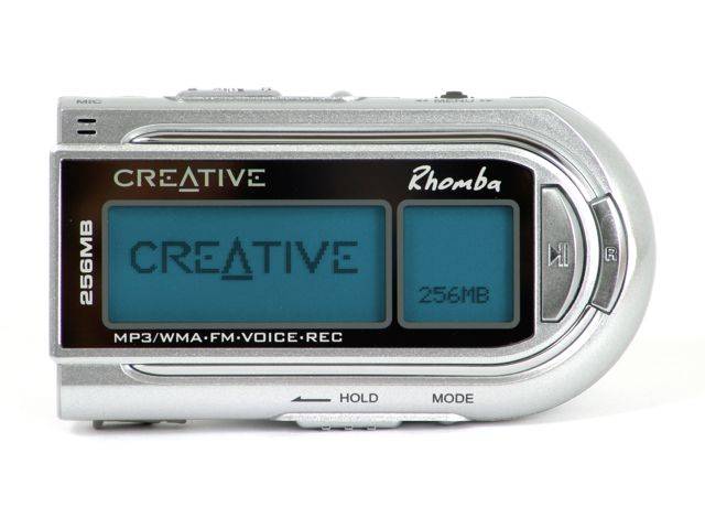 A Creative Rhomba egy igen tetszetős kis készülék, ezüst borítással és közepes méretű LCD kijelzővel. Ráadásul többfunkciós szerkezetről van szó: MP3 és WMA file-ok játszása mellett használhatjuk FM rádióként és diktafonként is. Kezelése egyszerű, gyakorlatilag minden fontos kezelőgombot megtalálunk rajta: üzemmód-váltás, play/pause, hangerő-szabályzás, felvétel, a menüben navigálás kétirányú kapcsolója, valamint egy, a gombokat inaktívvá tevő „hold” kapcsoló is helyet kapott. A készülékben akkumulátor található, mely az USB kapcsolaton keresztül töltődik fel. Az USB csatlakozást egy gumi fedő védi, ez talán a legbutább része a Rhombának, mert kicsit nehéz visszacsukni. Természetesen található egy normál, 3,5-ös jack csatlakozó is a fülhallgatónak, végül pedig egy nyakpántot is kapunk mellé.
