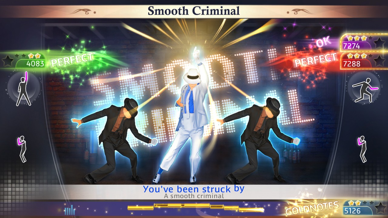 Játék közben háttérnek jellemzően az adott szám videoklipjének hangulatát felidéző környezet jelenik meg és a táncosok is ennek megfelelő ruhában vannak. Stilizált figurák láthatók a képernyőn, nem maga Jackson, de igazából ez nem volt zavaró. A táncosok nagyban ugrálnak középen, a szélen pedig kis piktogramok formájában előre jelzi a program, hogy milyen mozdulat következik. Ezek pontos értelmezése mondjuk nekem beletelt egy kis időbe, de személy szerint sokszor nem is azt néztem, inkább próbáltam a középső táncosok mozdulataira koncentrálni, még ha így kis késés is volt – a legtöbb számban amúgy is ismétlődő részek vannak, ha más nem, a refréneknél, így ezek megjegyezhetőek. Egy számnak második-harmadik alkalommal nekifutva pedig már minden határozottan jobban ment.