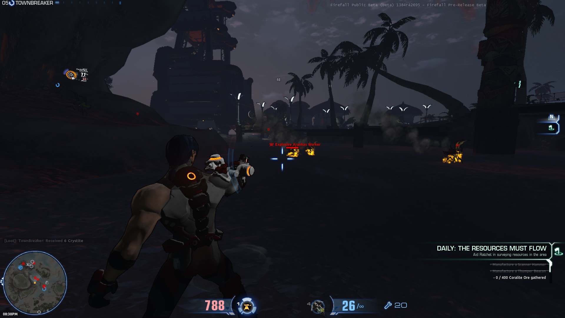 A fentiekből már kitűnhet, hogy a játékban van tartalom bőven, és a sornak még mindig nincs vége, mert bár a béta jelenlegi fázisában egyes dolgok (például a spontán felbukkanó ellenséges főellenfelek és raid partyk) nincsenek még megvalósítva, a Firefall iszonyatos mennyiségű hagyományos küldetést és dinamikus tartalmat is biztosít. A városokban a megszokott módon vállalhatunk feladatokat az NPC-ktől, ezekből nincs túl sok, gyakran nem is jelentenek valami nagy kihívást, csak kicsit lineárisan viszik előre a történetet, és ténykedéseink helyszínét tologatják a térképen, ha esetleg olyan komfortisták lennénk, hogy nem merünk kitörni a felfedezett és jól ismert területről. Sokkal lényegesebbek és érdekesebbek azok a feladatok, amelyeket akkor kapunk, ha igenis önként bejárjuk a térképet, inkább megkockáztatjuk a respawnt, a szembekerülést a mindent elsöprő túlerővel, a Firefall világának egyes helyszínein ugyanis spontán kaphatunk dinamikus, területi küldetéseket, amelyek az összes környéken levő játékos számára megjelennek a listán, mihelyst elég közel kerülnek hozzá. Például felfedezzük a Kiválasztottak egyik táborát és be kell hatolnunk, majd szabotálnunk, hogy hátráltassuk előretörésüket. Vagy találunk egy fúrót, amelyet egy másik játékos nem tudott megvédeni, viszont még viszonylag jó állapotban vannak a darabjai, és ezeket be kell gyűjtenünk. Az ellenséges mobok sem tétlenkednek. Ha nem irtjuk őket kellőképpen, vagy sikeresen felhergeljük őket és nem elimináljuk időben az életünkre törőket, előfordulhat, hogy hatalmas, mutánsokból vagy Kiválasztottakból álló csapatok kezdenek el portyázni a környéken és zaklatni a játékosokat. Nem tudom, hogy csak bug volt-e, vagy tényleges játékelem, de például amikor az egyik kevésbé gyakran látogatott helyszínen fúrót állítottunk, váratlanul felbukkant egy portyázó Kiválasztott osztag, állig páncélban, fegyverben, egy rakétavetős minibossal – vélhetően egy osztag játékos nemrég megpróbálta szabotálni a bázisukat, ami nem sikerült, a harckészültségű mobok pedig jóval érzékenyebbek lettek a környéken lézengő játékosokra, aminek mi ittuk meg a levét... Egy másik alkalommal pedig egyik társam véletlenül sikeresen felzavart néhány arachnid fészket, amelyeknek lakói természetesen azonnal üldözőbe vettek, de miután a távolság köztünk és köztük már túl nagy lett, inkább visszafordultak, és lerohantak egy útjukba került egészségügyi állomást, amelyet egy másik játékos állított fel kicsit korábban.