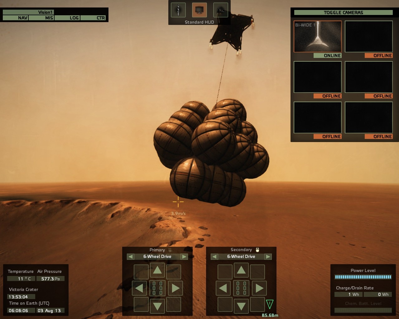 Utoljára talán ZX Spectrumon játszottam holdraszálló játékkal, ahol aprólékosan, óvatosan kellett irányítani a fúvócsöveket, hogy ne csapódjunk a felszínbe, de el se szálljunk. Így aztán nagyon felcsigázott a hír, hogy az amúgy is szívem csücske fejlesztők egy Mars-kutató-szimulátorba kezdtek. Tulajdonképpen mindenük megvolt már hozzá, mindenekelőtt egy remek, sok próbát megélt engine. Ezen kívül csak ötletekre van szükség egy ilyen játékhoz, hiszen nagyon sok minden mást nem kell tudnia. Fontos a fizika és ennek két alesete: a gravitáció meg a rombolhatóság. De ezek valamennyire már megvoltak a Take On Helicoptersben is. És mivel a helikopterek is függőlegesen le- és felszálló eszközök, ahogy a Marsra is függőlegesen juttatják el a felszíni kutatóegységeket, így ebben a sorozatukban jelent meg a játék. Amely – az Arma 3-hoz hasonlóan – már alfa verziótól elérhető a kíváncsi játékosoknak és azoknak, akik segítenének a fejlesztőknek: egyrészt anyagilag a megvásárlással, másrészt a hibák jelentésével.