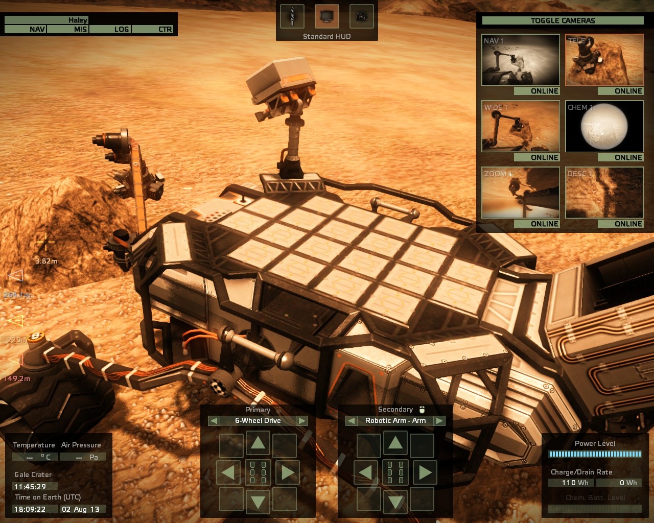 Ahogy az előzetes hírek is ígérték, kampány módban egymás után kell különböző tudományos küldetéseket teljesíteni, amelyekért pénzt kapunk, így újabb missziókat finanszírozhatunk. Ez alapvetően nem hangzik túl izginek, és igazából az egész játék nem túl izgalmas – legalábbis a hagyományos értelemben. Hiszen órákig csak haladunk előre, néha pedig megállunk, hogy feltöltsük a napelemekkel az akkumulátort. Még 100 méter is idegtépően lassan tehető meg, de amikor kiírja a HUD-ra, hogy a következő pont, ahol körül kell nézni 1 km-re van, akkor már a gondolattól is megőszülünk. Mégis van benne valami magával ragadó: ott vagy iszonyat messze egy nagyon érdekes bolygó felszínén. Ott kell megoldanod különböző feladatokat. Vannak könnyűek, triviálisak és vannak összetett és nehéz feladatok. És amikor megoldasz egy ilyet, még mindig működőképes az egységed és kérhetsz újabb feladatokat anélkül, hogy milliárd dollárból új egységet kéne küldeni... na, ezek az izgalmas részek. Kibírja-e a motor vagy a kerekek azt a meredek kráteroldalt? Elférek-e két kő között vagy meg kell kerülnöm az egészet? Ki tudom-e hajtani a robotkart, hogy hozzáférjek ahhoz a sziklához úgy, hogy ne sérüljön semmi? Megtalálom-e az előző expedíció elromlott vagy felborult járművét? Elhiszem, hogy nem tűnik izgalmasnak, de valahol belül a felfedezők szelleme ott él mindenkiben, és ezért mégis izgalmas a játék.