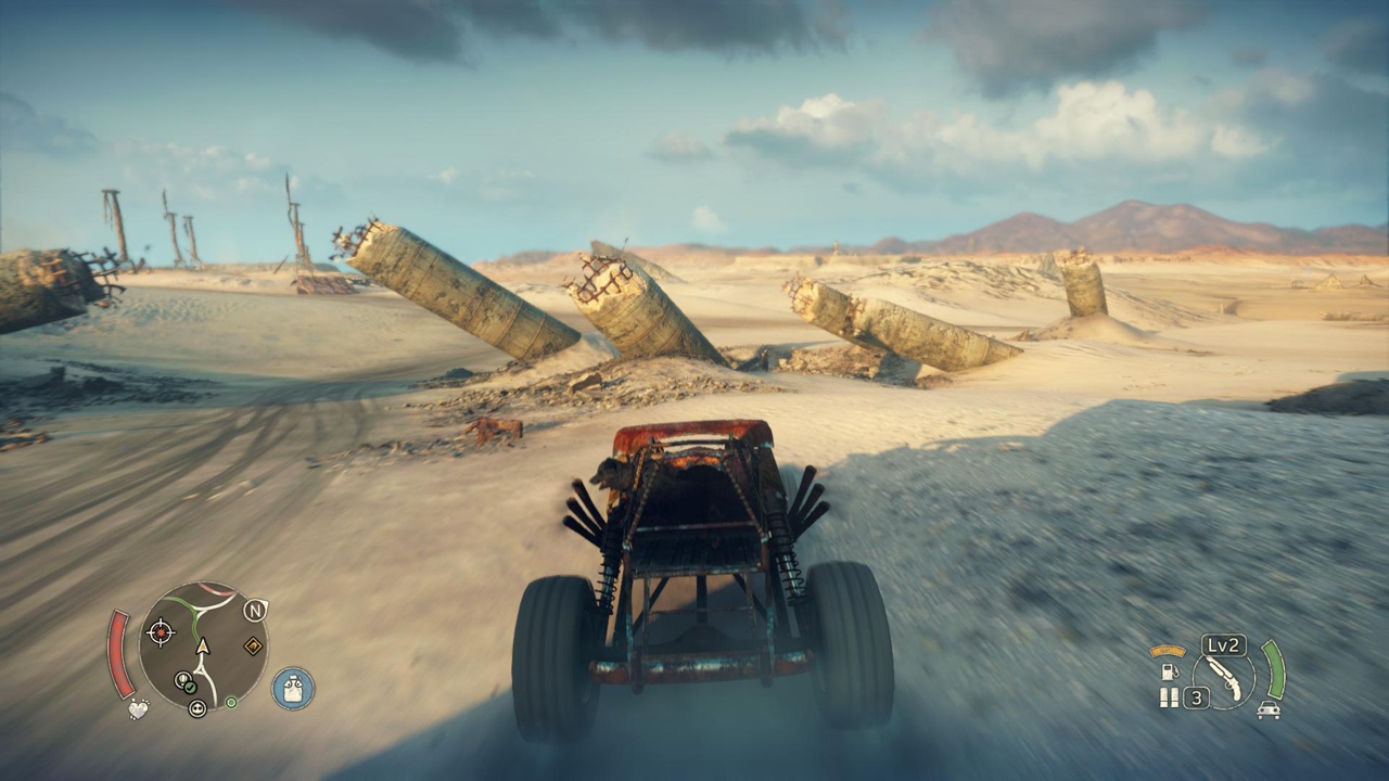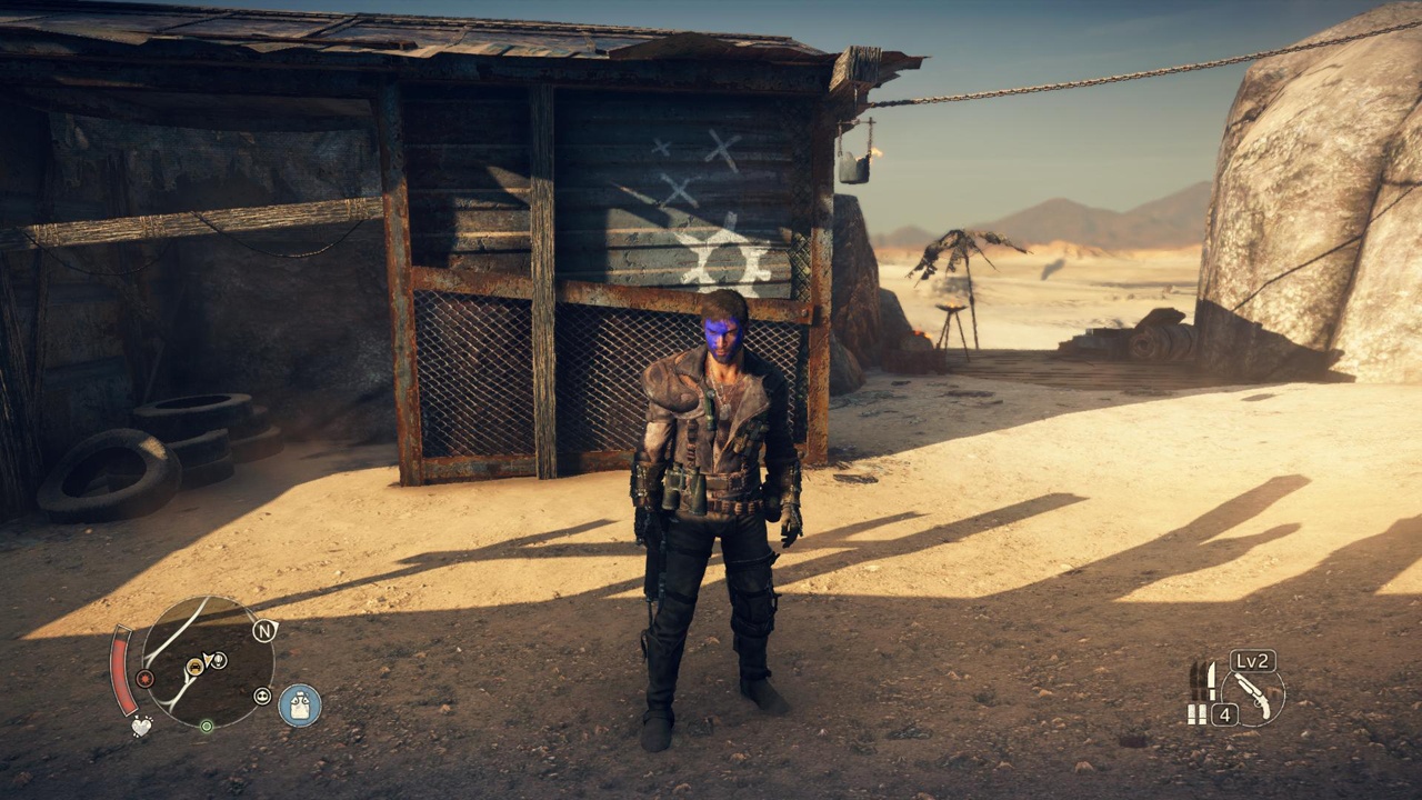 És ha már említettem a térképet és a zónákat. A játéktér egészen hatalmas, a térkép egyik sarkából a másikba még autóval is nagyon sokáig tart eljutni. A pusztaságot kisebb-nagyobb zónákra osztották, amiket persze Scabrous Scrotus felügyel. Befolyását a táborainak felszámolásával (és a mi oldalunkra állításával), a madárijesztőinek és mesterlövésztornyainak elpusztításával, valamint az egyes konvojok eltérítésével tudjuk csökkenteni. Emellett rengeteg semleges táborhely is van, ami kizárólag a fémhulladék és a lőszer (utóbbi piszok ritka) begyűjtése miatt fontos. Sajnos ezek a folyamatos loot-utak hamar nagyon unalmassá válnak. A végeláthatatlan autózáson viszont a gyorsutazás opció segít valamelyest.