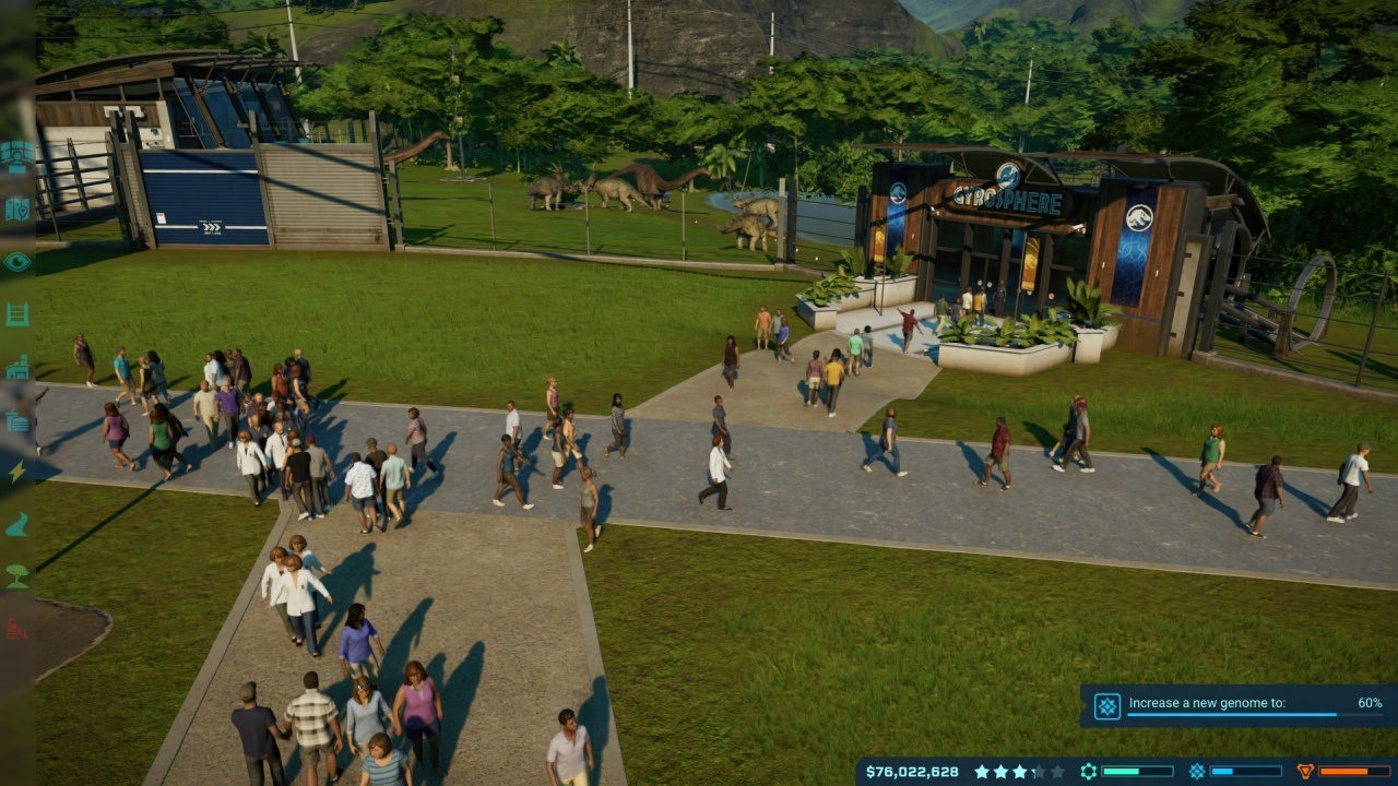 Majdnem 100 óra Planet Coasterezés után úgy éreztem, felüdülés lesz játékgépek helyett élő állatokból élményparkot tervezni. És mivel a Jurassic World Evolution is a Frontier konyhájából került ki, gondoltam, hogy nagyon nem nyúlhatnak mellé. De a JWE egy egészen más játék. Érthető módon annyira a dinoszauruszokra koncentráltak, hogy azok jól nézzenek ki, remek hangokat adjanak ki és élethűen mozogjanak, hogy maga az élménypark-menedzselős rész elsikkadt a játékból.