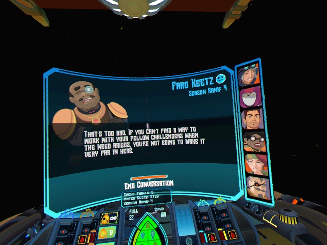 VR-módban játszva belátjuk az egész teret – amerre nézünk, arra fognak lőni az ágyúk, és a lassan araszoló hajón ácsorogva nem leszünk rosszul, ami jó hír az erre érzékenyeknek. Még egy kézifegyver is harcba szólítható, ha a kisebb drónok a fedélzethez túl közel érnének, imígyen takaríthatjuk el a makrancos támadóinkat. Az állomások között folyamatosan átültethetjük embereinket, ugyanis ha komolyabb kár éri a hajótestet, azt is csak ők tudják helyrepofozni. Pajzsunk minden oldalról véd, így amíg az aktív, nem veszítünk életet. Erre nagyon figyelni kell, mert bár a védelem visszatöltődik, és mi is képesek vagyunk ideiglenesen megerősíteni azt, addig a hátasunk nem fog megjavulni az adott körben, ami 2-3 műsorszámot takar. Így ha véletlenül kiesnénk egy játékból, akkor a következőt is bukjuk, valamint az értékes túlélőbónuszt is.