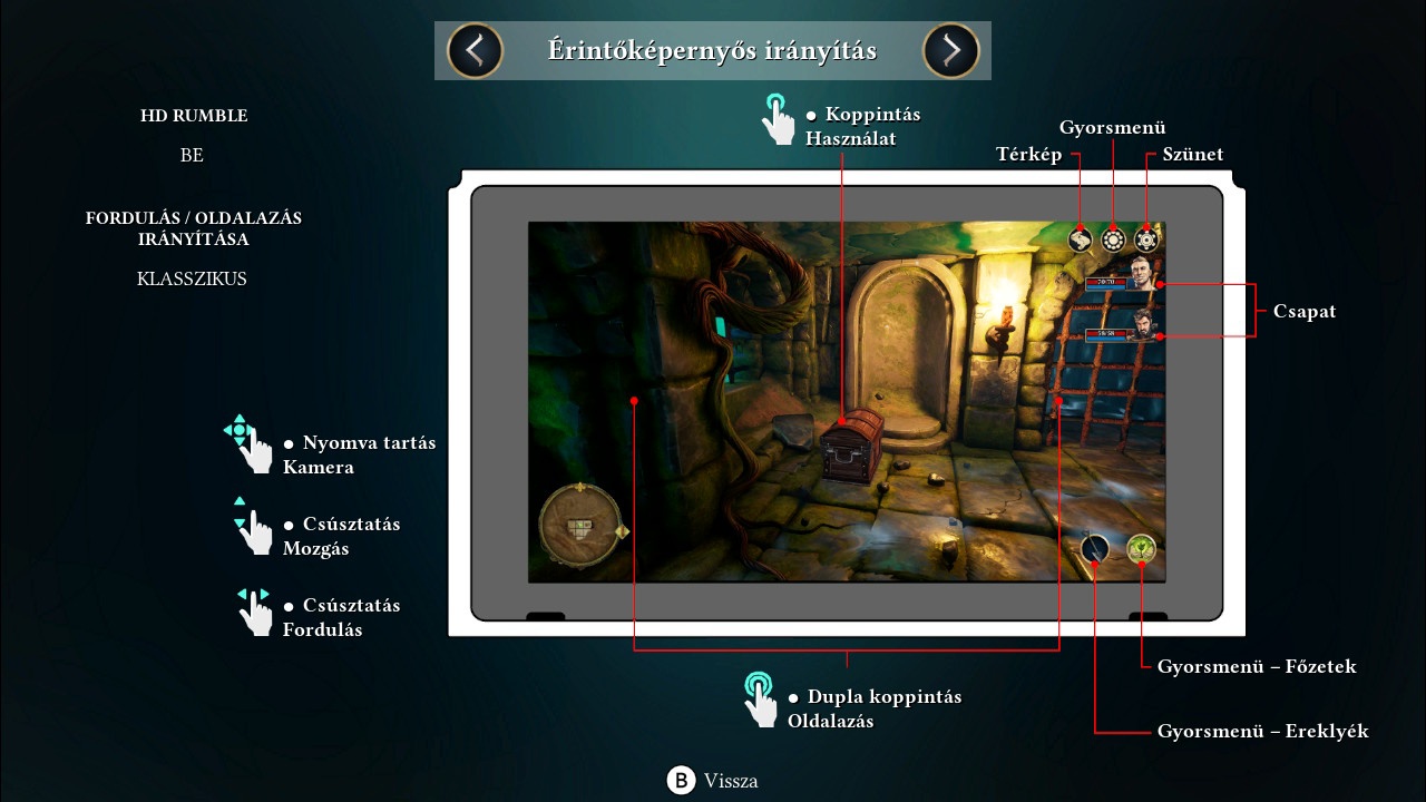Ami viszont határozottan mutatja, mennyire próbáltak a budapesti srácok odafigyelni a konzol sajátosságaira, az például az irányítás. Ugyan giroszkópos célzásrásegítést nem kaptunk (nem is lehetett volna hogyan a játékmenetbe, illetve -mechanikába illeszteni), azért a HD Rumble-lel megtámogatott joy-conos irányítás mellett érintőképernyőset is kaptunk. Én nagyra értékelem az igyekezetet, de igazából ez inkább érződik egy majdani mobilportnak szóló feature-nek: a Switch képernyője szerintem elég kicsi ahhoz, hogy a kezünk ne takarjon ki belőle kellemetlenül nagy részt (vagy egyszerűen csak nekem van túlságosan péklapát méretű mancsom). Mindegy, ez legyen a legnagyobb bajunk – és egyébként is, jól jöhet, ha esetleg a Joy-Conunk elkezd driftelni. :-)
