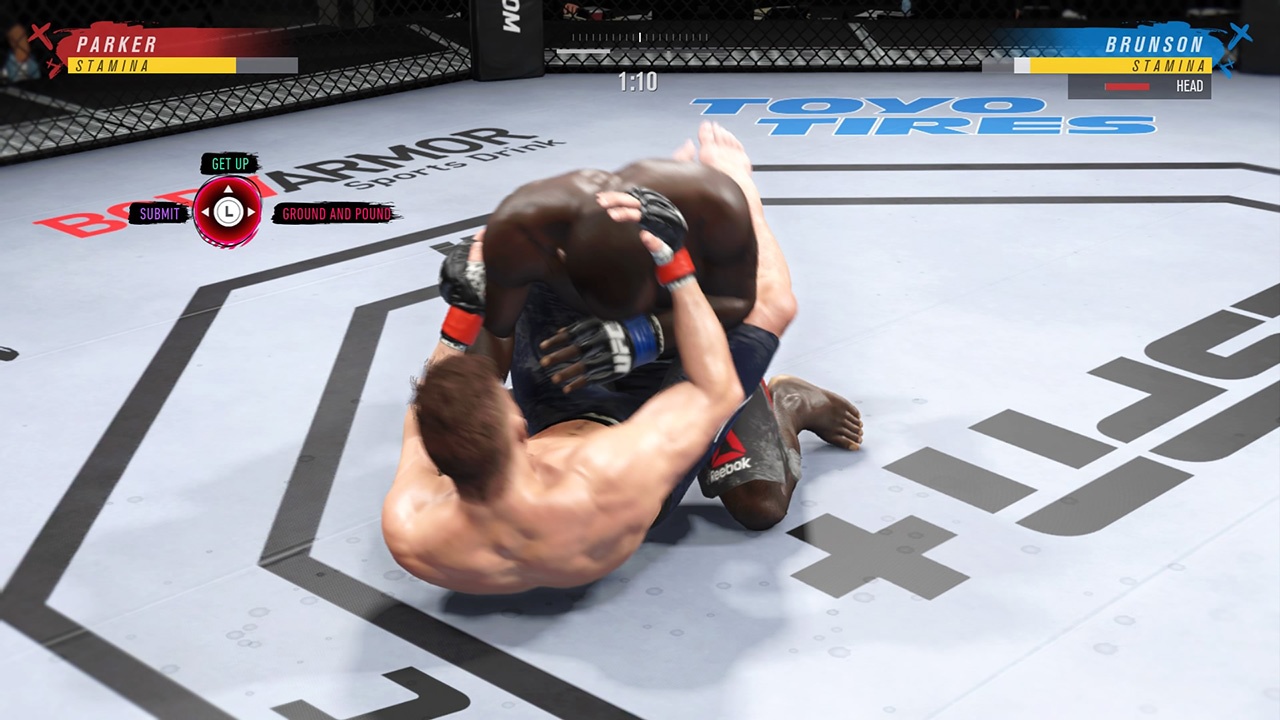 Szóval úgy ültem le a játék elé, hogy látatlanban is sejtettem, én bizony amíg csak lehet, talpon maradok az oktagonban. És így is lett: két-három mérkőzés alatt világossá vált, hogy hiába van meg a lehetőség a földharcra, az ellenfél összes létező ízületének kicsavarására, nem az az én stílusom. Én a jó öreg kickbox útját követtem szinte végig: ütések, rúgások, könyökösök, térdesek. Jó öreg kocsmai bunyó. A UFC 4 erre tökéletes táptalajt kínál, de természetesen azok is érvényesülhetnek benne, akik épp fordítva gondolkoznak, és a pusztakezes csihipuhi helyett az egyik legősibb olimpiai sportág fogásaival gyömöszölnék a földbe ellenfeleiket.