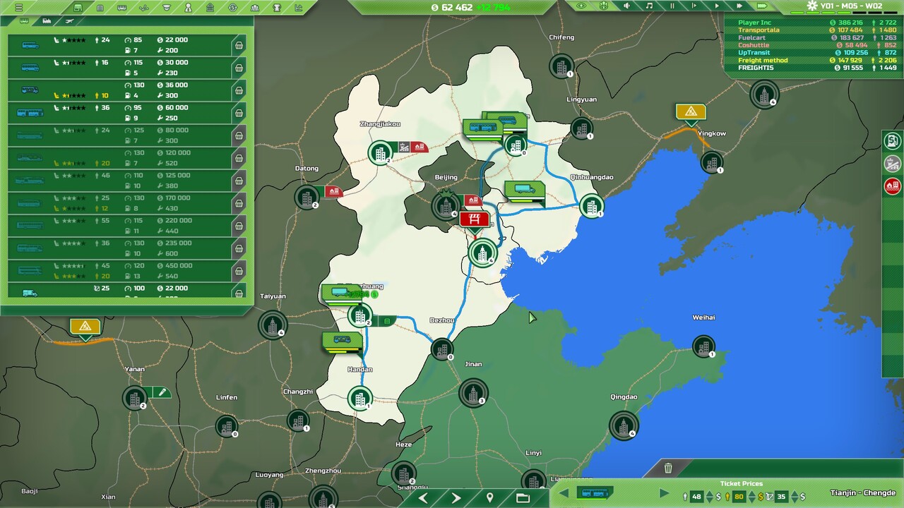 Amikor már jól halad a biznisz, megvan rá a lehetőség, hogy újabb területeket oldjunk fel, viszont az egész világtérkép játszhatóságát nem tették lehetővé a fejlesztők. Az egyik oka ennek a hajók hiánya, mivel az óceánjárók és egyéb kisebb ladikok nem kerültek be a játékba, így pedig csak repülővel lehetne átszelni vizeket. Nagy kár ezért, és csak bízni tudok abban, hogy egy frissítés után nem csak egy adott kontinensen kezdhetünk térhódításba. A Transport INC további kihagyott ziccere a hiányzó online multiplayer, mivel akár barátokkal vagy a világ másik végén élő random taggal is szívesen versengtem volna. Egyéb hiányosságokról és hibákról viszont nem tudok beszámolni, minden úgy működik, ahogy kell. A grafikai szempontból tényleg csak a lényeget látjuk, semmi sallang vagy 3D nézet nincsen, ami lényegében nem is baj, hiszen ennek a játéknak nem is erről kell szólnia, és így a gépigény is tulajdonképpen említésre sem méltó, annyira alacsony.