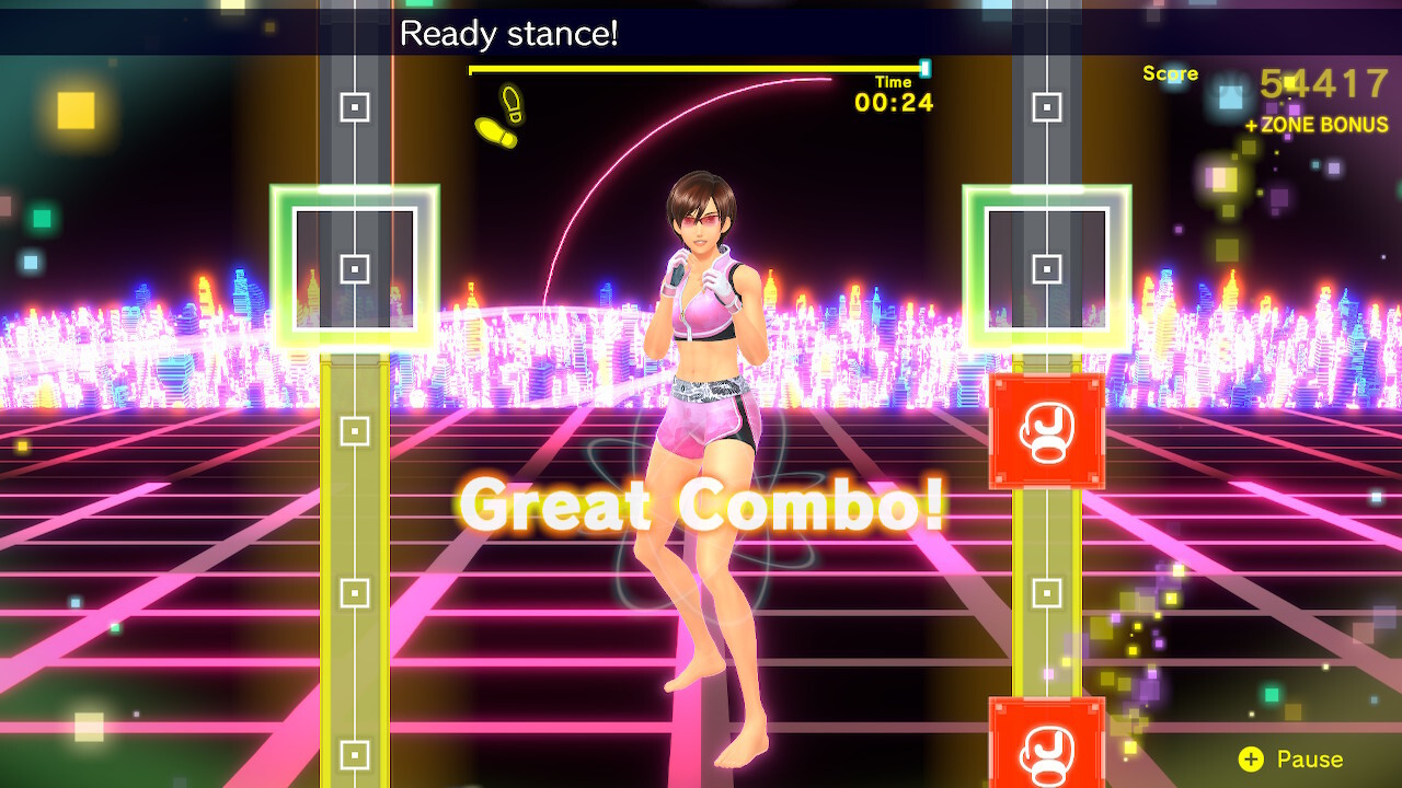 Kezdjük azzal, hogy ez nem játék. Ténylegesen edzésprogramot kell végrehajtsunk, valahányszor elindítjuk (persze lehet szabadon választott gyakorlatot is végrehajtani, ha ahhoz van kedvünk – akár egy másik szerencsétlennel együtt). A két Joy-Cont jól megmarkolva légbokszolunk egy jót, miközben híres számok sajátos instrumentális feldolgozásaira próbálunk ritmusra ugrálni. Választott instruktorunk mutatja, mit várna el tőlünk, és persze be is szól, ha rosszul csinálunk valamit – szerencsére van annyira kedves, hogy tanácsokkal is ellát, illetve a dicséretekkel sem fukarkodik. Az edzés teljesen testre szabható, az adatainkat is rendszeresen bekéri a program, hogy lássa, hogy haladunk a célkitűzésünkkel (én tíz kiló mínuszt állítottam be, de szerintem ennek reálisan majd az év végi hajtás után tudok nekiállni tisztességesen).