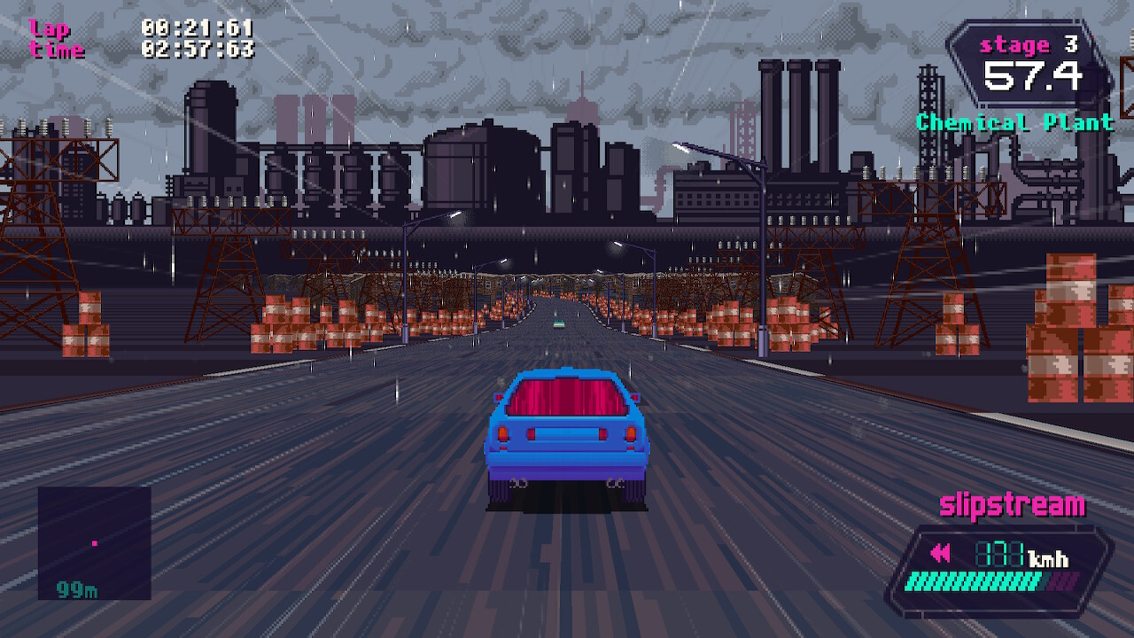Brazíliából érkezett jelen tesztalanyom, a Slipstream, amely a retro divathullámot igyekszik meglovagolni – ezúttal a klasszikus árkád autóverseny, mint stílus van terítéken. Ennek jeles képviselői anno az Outrun, a Lotus Turbo Esprit Challenge és a Crazy Cars voltak, csak hogy a nevesebbeket említsem. Ha a kedves olvasónak netán emlékképek is felvillannak ezekről, akkor üdvözlöm az Érett Gamerek Klubjában magam mellett (is), és welcome drinknek fogadj el egy klasszik Traubisodát! ;-)