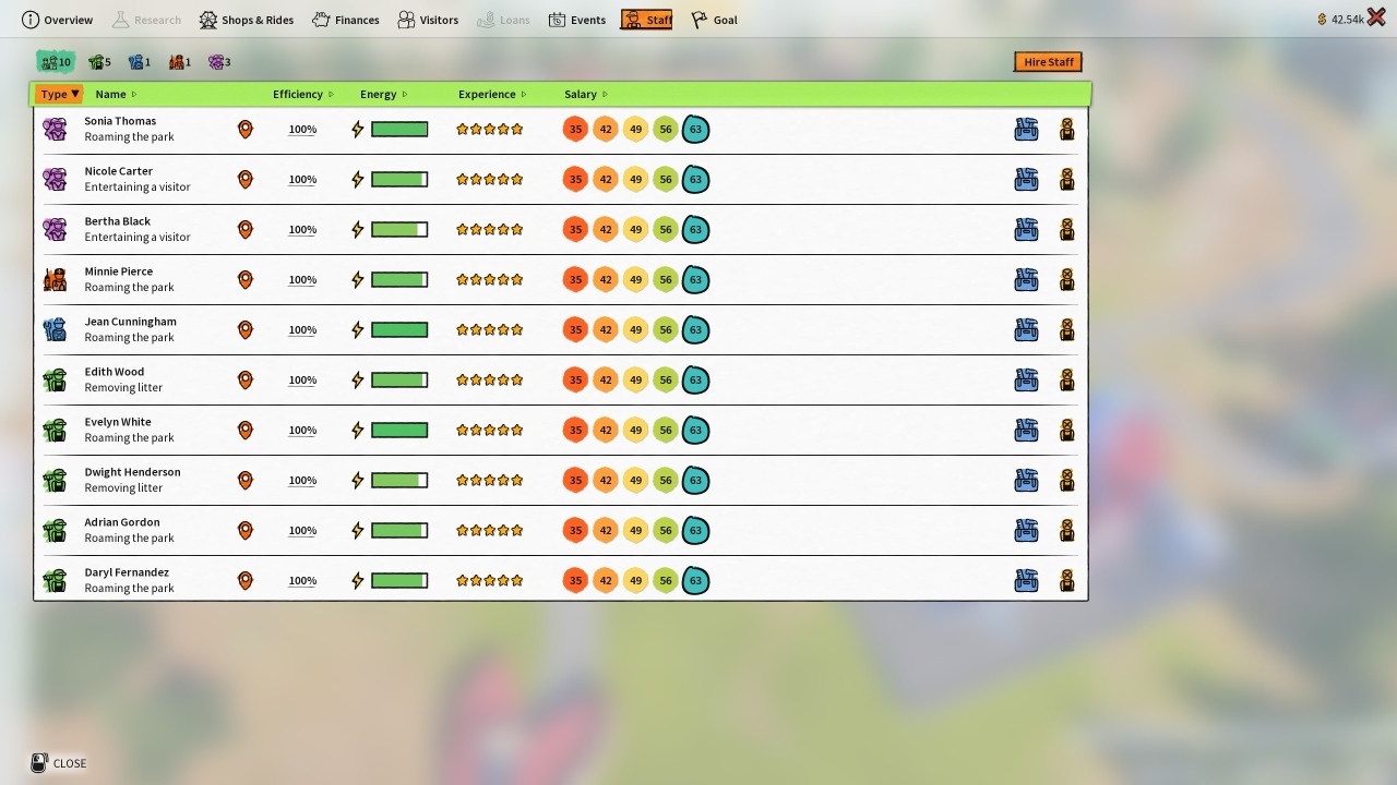 A látványvilágra szerintem nem lesz majd panasz, messziről egy szépen felépített park a nyüzsgő tömeggel, a villódzó attrakciókkal és az őrült hullámvasutakkal egészen pofás látványt nyújt. Közelebbről nézve pedig beleshetünk a bódékba, követhetjük a bámészkodó vendégeket, de akár fel is ülhetünk az attrakciókra vagy hullámvasutakra. De az időnk nagy részét nem ez, hanem a park menedzselése fogja lekötni. Nem elég attrakciókat telepíteni ide-oda, majd utakkal összekötni őket. Figyelni kell a vendégek igényeire, gondoskodni kell a park tisztaságáról, a vendégek etetéséről és itatásáról, illetve egyéb szükségleteik kielégítéséről is. Ehhez személyzetet kell felvenni, takarítókat, szerelőket, ápolókat. A játékban nem kapunk meg mindent azonnal, egy külön kutatási menüpontban fejleszthetjük ki a különféle épületeket és attrakciókat.
