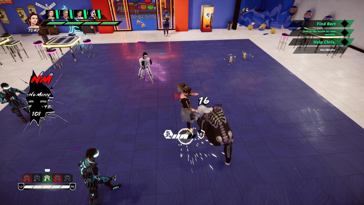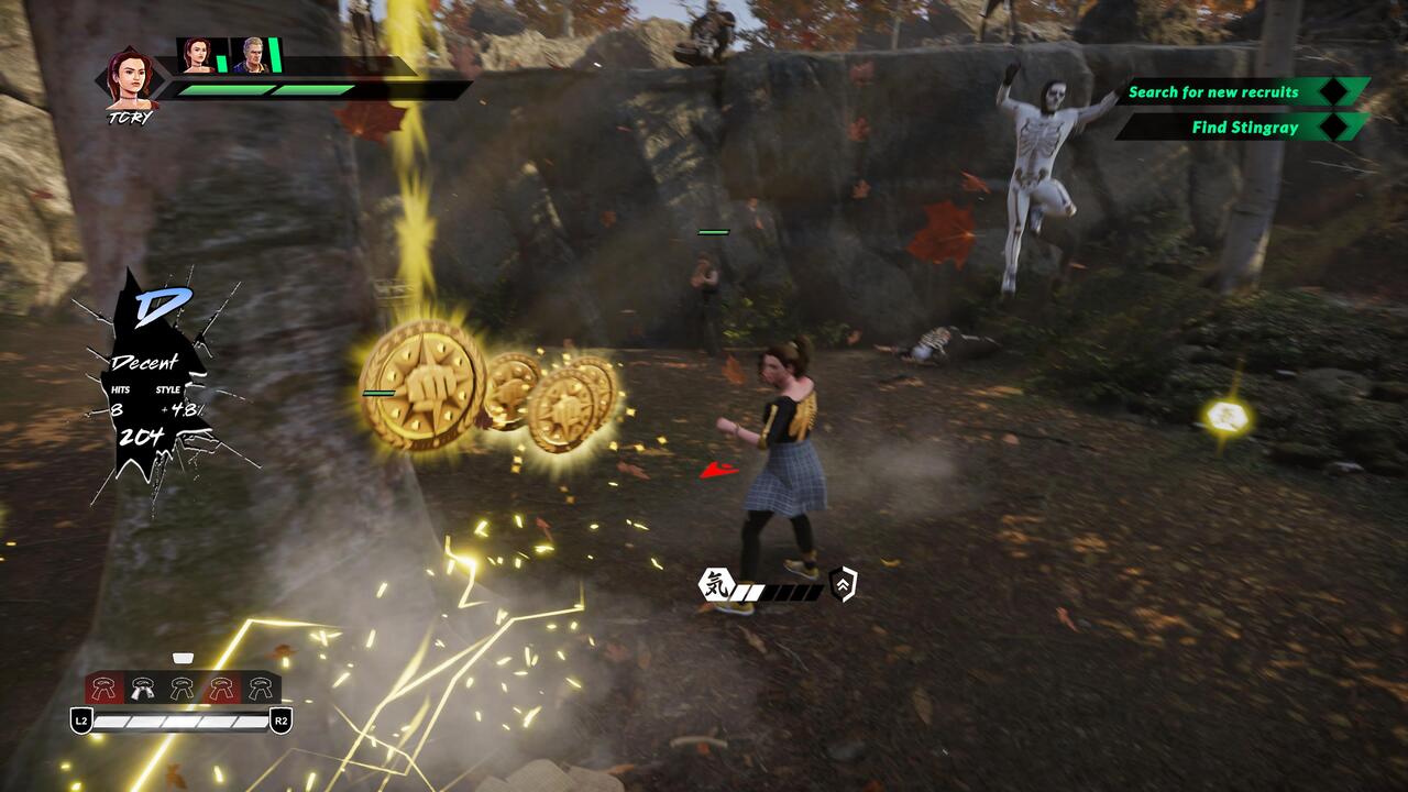 Minden helyszínen megnyerhetünk magunknak arcokat, hogy nálunk tanuljanak vagy segítsék a munkánkat. Ezek az emberek főellenségekként funkcionálnak, előttük le kell csapni pár tucat segédet. Maximum négy karaktert vihetünk magunkkal egy-egy pályára, köztük villámgyorsan váltogathatunk kedvünk szerint. Az alap ütés/rúgás/dobás/védés/ugrás/kitérés mozdulatokon túl speciális képességeket csalhatunk elő, ha elég chi áll a rendelkezésünkre. Ezek a spéci dolgok sokszor a Street Fightert megszégyenítő varázslatok képében manifesztálódnak. Akár jeges, tüzes, áramos effekt is kiséri a pofonokat, ha pedig egy új ember talál otthonra nálunk, az ő képességeit is beválogathatjuk repertoárunkba.