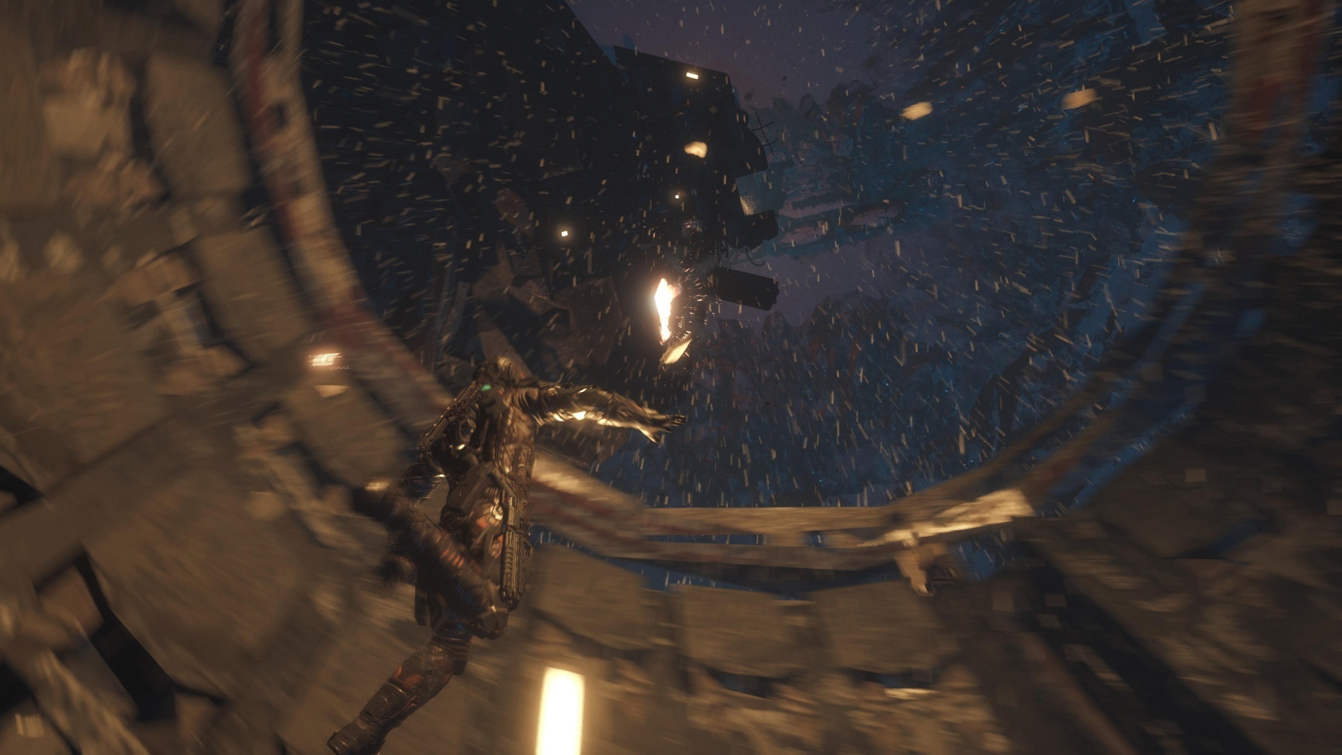 Külső nézetből vezérelhetjük emberünket, aki a Dead Space néma Leventéjéhez képest igen is szószátyár, aktív szereplője az eseményeknek. A színészek játékával nincs baj, ahogy a zenészek is szépen muzsikálnak. Egy akció-horror stufftól nem is várnék kevesebbet – félelmetesen jók a hangeffektek, morajlások, a szörnyek gurgulázása. Főleg fejhallgatóval üt, és ami jó benne, hogy nem jump scare jelenetekkel próbálja folyton fenntartani a feszültséget. De persze akad azért ilyesfajta ijesztgetésekre is példa.