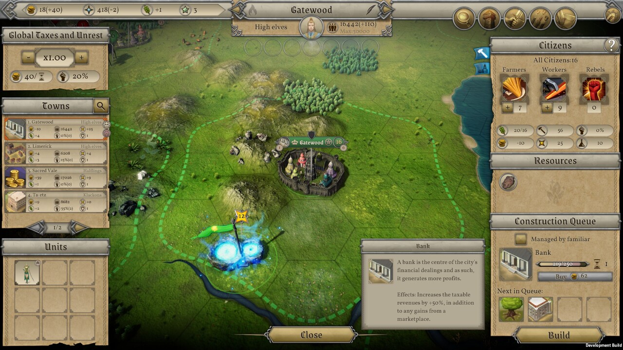 A városokban legyártott egységeket legfeljebb kilences csoportokba rendezve együtt mozgathatjuk, és amikor harcra kerül a sor, akkor a játék nem összehasonlít néhány számot, mint a Civ játékokban, hanem taktikai nézetbe váltva lejátszhatjuk a csatát körökre osztva, mint a HoMM játékokban. Ha maximálisan kihasználjuk egységeink speciális képességeit és a varázslataink nyújtotta lehetőségeket, akkor egy erősebb ellenfél felett is győzelmet arathatunk.