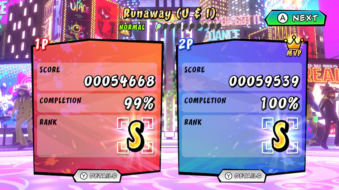Anno Sega Dreamcasten és a játéktermekben két ténylegesen rumbatök formájú vezérlővel kellett irányítani, most pedig már adottak a mozgásérzékelős kontrollerek – anno az egyik fájó pont a kritikusok szerint pont a drága kiegésztő volt. Nos, aki tényleg mozogni akar, az tolhatja „hadonászós” irányítással is a játékot, a lustábbaknak pedig adott a „nyomkodós” is – be kell valljam, az előbbi élvezetesebb. Nem egy este ugráltam a kislányommal és a kisfiammal a tévé előtt és kalimpáltunk a Joy-Conokkal: a játék remekül leköveti a mozgásunkat, nem lehetetlen 100%-ra megcsinálni a dalokat. Kis hunyorítással egy könnyedebb edzésnek is felfogható így, ha kellően erőből végezzük a mozdulatokat – de arra talán a Fitness Boxing 2: Rhythm & Exercise alkalmasabb (már ha a műfajon belül maradunk, mert egyébként erre ott van még a Ring Fit Adventure is).