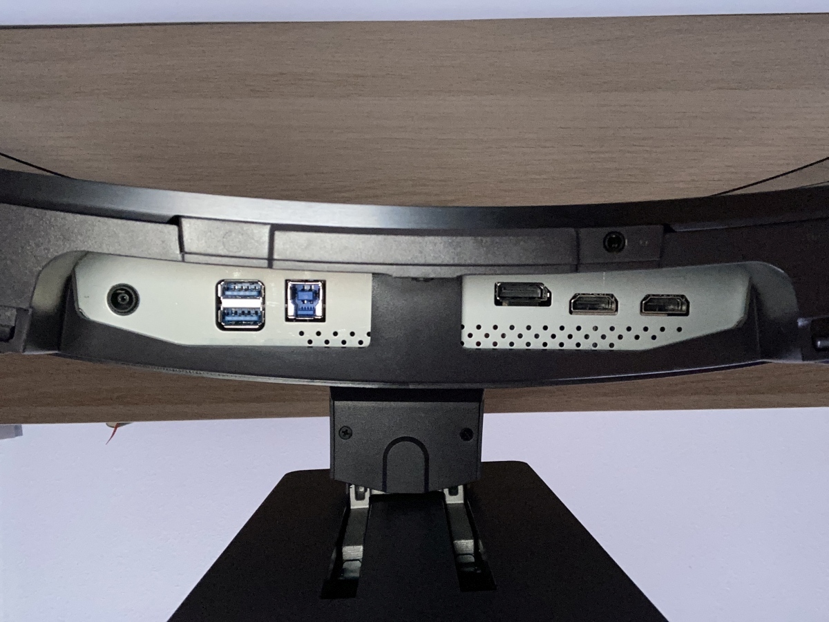 A 2-portos USB 3.0 hub mellett találunk még 4 pólusú fejhallgatókimenetet is – azaz ha a mobiloknál megszokott mikrofonos fej- vagy fülhallgatónk van TRRS dugóval, a szövegelésünk is hallhatóvá válik a digitális térben. A pixelek pedig az 1 db DP 1.4 vagy a 2 db HDMI 2.1 egyikén áramolhat be. Sajnos hangszóró nincs – ezen a szinten szerintem már elvárható lenne, hogy egy normális minőségű sztereó hangszórópár szériatartozék legyen...