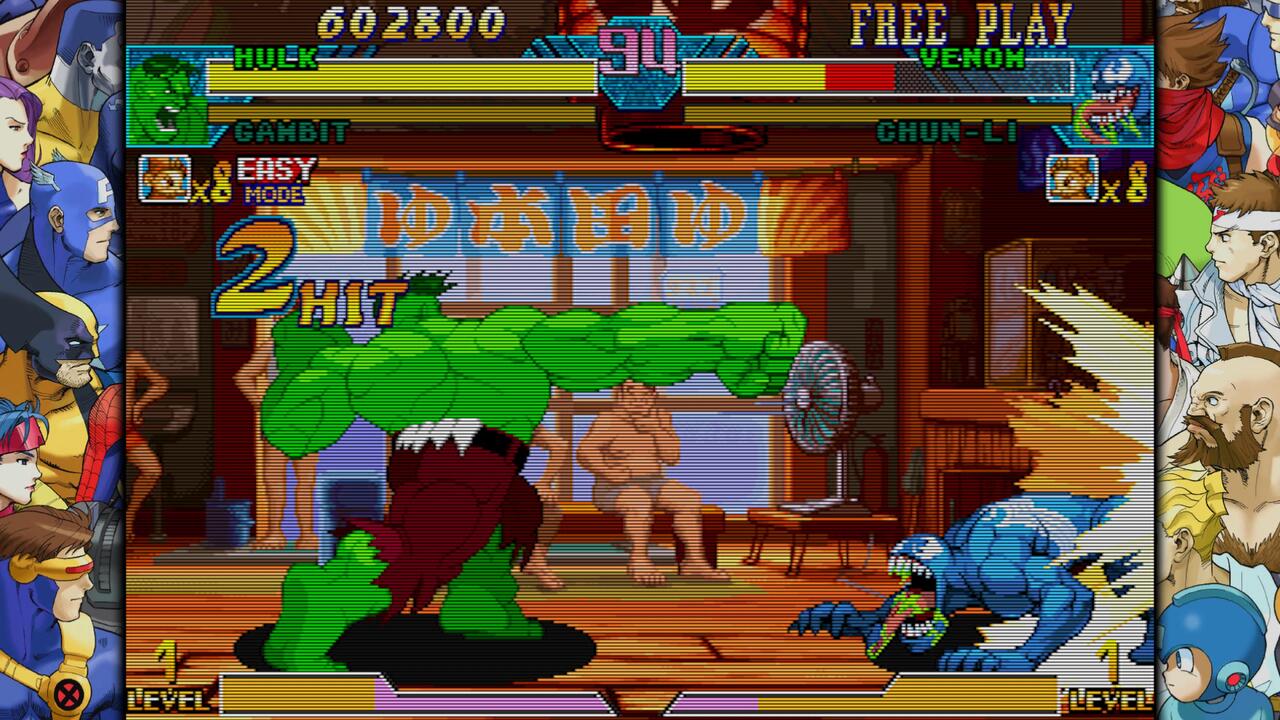 A fentebb taglalt két stuff rendelkezik egy-egy crossover epizóddal, ami a minden évtizedben népszerű, Street Fighter-es arcokkal engedi össze a Marvel képregénykarakterek javát. Ezek nincsenek túlgondolva, így szimplán így hívják őket: X-Men vs. Street Fighter, Marvel Super Heroes vs. Street Fighter. Ezek azok a szoftverek, amelyek már elérhetik a Street Fighter rajongókat, valamint kedvesek lehetnek a Marvel lelkületű tábornak is. Jómagam az utóbbiba tartozom, így örültem, hogy láthattam, játszhattam ezekkel a korai produktomokkal is, hiszen ezekből fejlődött ki az egyik legjobb vs. jellegű termék.