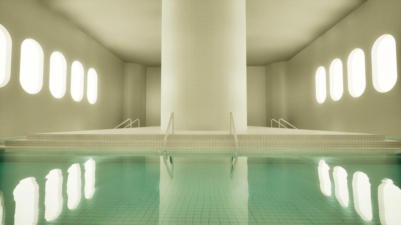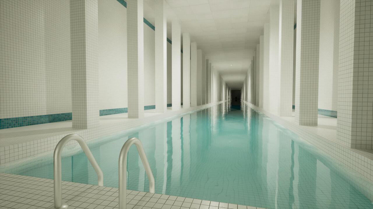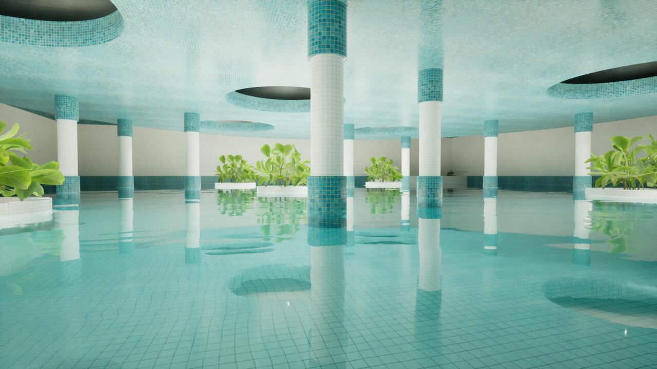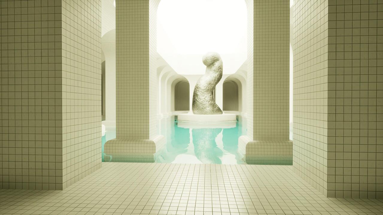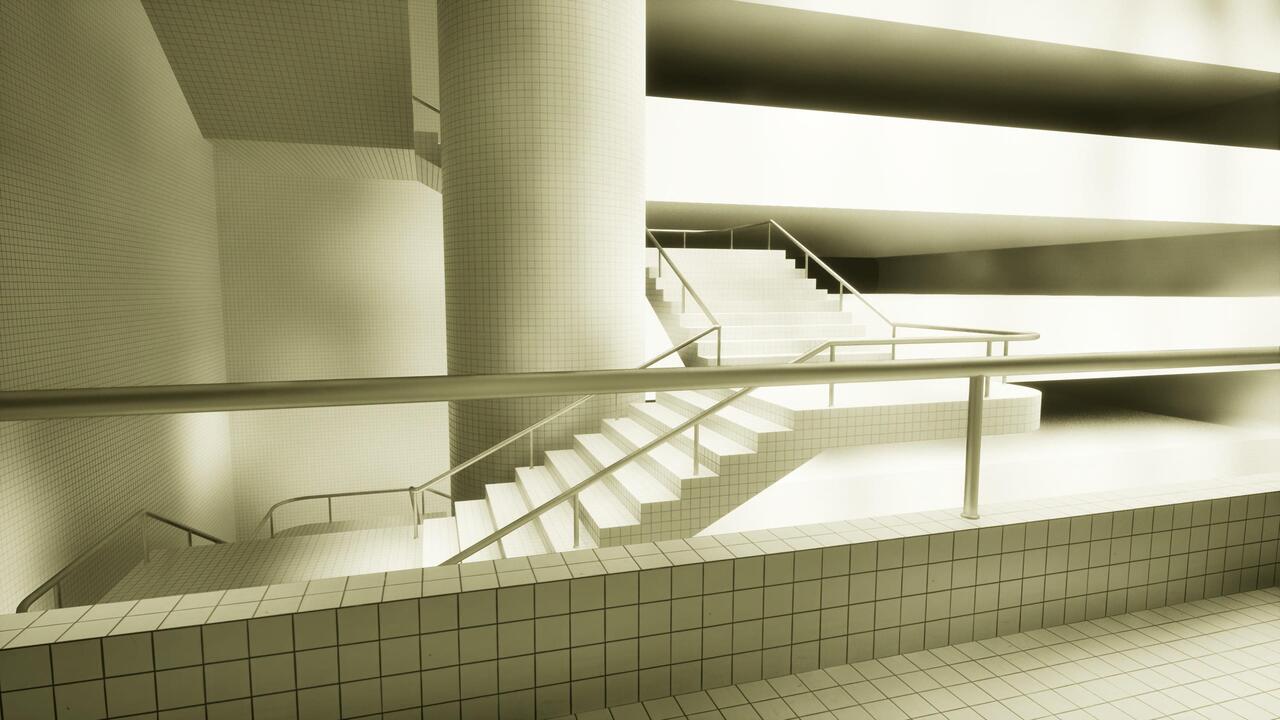 A Dreamcore több fejezetre oszlik, ezek közül viszont jelenleg csak kettő érhető el jelen pillanatban, a trófealista is rájuk korlátozódik. Az első a listáról a Dreampools, amely a már említett medencés téma köré épül. Egy hatalmas labirintusban mozoghatunk, amelyben rengeteg medence található. Ez egyfelől lehet rendkívül nyugtató, relaxációs élmény (nem véletlenül kapott saját zenei mellékágat a vaporwave zsánerben), másrészt roppantmód nyomasztó is, ha az ember belemerül (szó szerint). Az első percekben még hajtott a felfedezés öröme, és érdeklődve próbáltam kitalálni, hogy mely utak hová vezetnek, hol ágaznak el a vízicsúszdák, és mit jelenthetnek a falakra festett ajtószimbólumok. Aztán az egész elkezdett a bőröm alá kúszni, és rendesen a hideg rázott, hogy egyedül bolyongok egy hatalmas útvesztőben, ahol óriási oszlopok és gondosan kicsempézett falak szegélyezik az utamat.