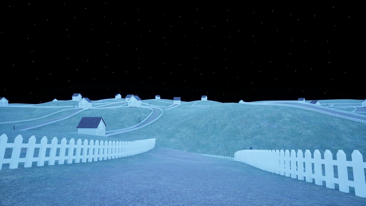 Az Eternal Suburbia már egy fokkal érdekesebb. Ezt a Level 94 (szintén a The Backroomshoz köthető) ihlette, és lényegében arról van szó, hogy egy hatalmas kertvárosba kerülünk, ahol ugyanolyan házak között kell mászkálnunk. Némileg lineárisabbnak tűnhet a haladás benne, de itt sem egyetlen helyes útvonalat kapunk. Érdemes a víztározó felé haladni, hiszen ott egy kulcsot vehetünk fel, ami a tovább haladáshoz létfontosságú. Tetszett, hogy a napszak változik, tehát ahogy haladunk, úgy ránk esteledhet, majd jön a pirkadat, és ez a ciklus folyamatosan ismétlődik. Az Eternal Suburbia nem érződik annyira nyomasztónak, talán pont azért, mert nem egy zárt helyen játszódik. Később átkerülhetünk egy backrooms-ihletésű helyre, sőt, kiderül néhány titok magáról a kertvárosról is, de összességében szerintem ez egy sokkal kevésbé nyomasztó élmény, mint a Dreampools.