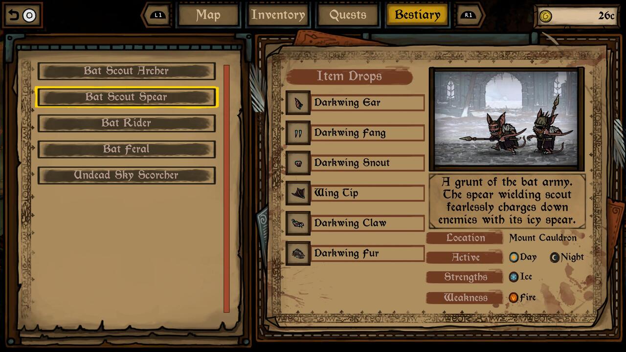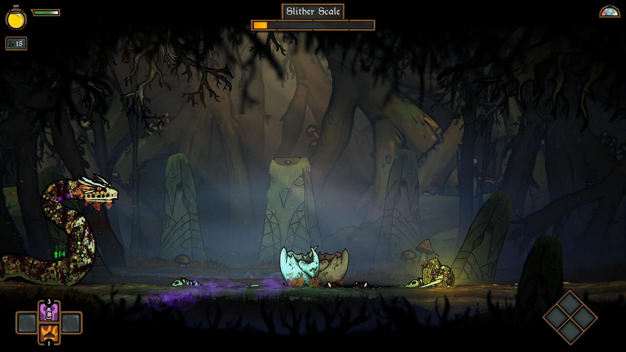 Az összecsapások az elején izzasztók még közepes nehézségen is. Nagyon kevés az életenergiánk, sebeznek rendesen a dögök, és a kulacsunkban tárolható bogárnedv se található már meg minden pihenőpontnál. Cserébe viszont bokrokról bogyókat szedve pótolhatjuk még a lötyit. A széttörhető hordókból, ládákból a nyílvesszőket és lövedékeket pótolhatjuk másodlagos fegyvereinkhez. Apropó, fegyverek! Eszméletlenül sok gyilkoló eszközt találhatunk és fejleszthetünk ki a játékban. Kardok, lándzsák, fejszék és kétkezes verzióik tárháza vár ránk. Azt mondom, bármelyik szerepjátékhoz felnő ilyen tekintetben a Tails of Iron második része. Már az elsőben is szép számmal találhattunk fegyvereket, de itt most brutális, mennyiféle jóság közül válogathatunk. És ezeket még fejleszthetjük is, ha rendelkezünk némi tőkével és a megfelelő nyersanyagokkal. A legtöbb alapanyagot ezekhez vadászatokból fogunk szerezni, amik veszélyes és izgalmas küldetések formájában lesznek tetten érhetők.