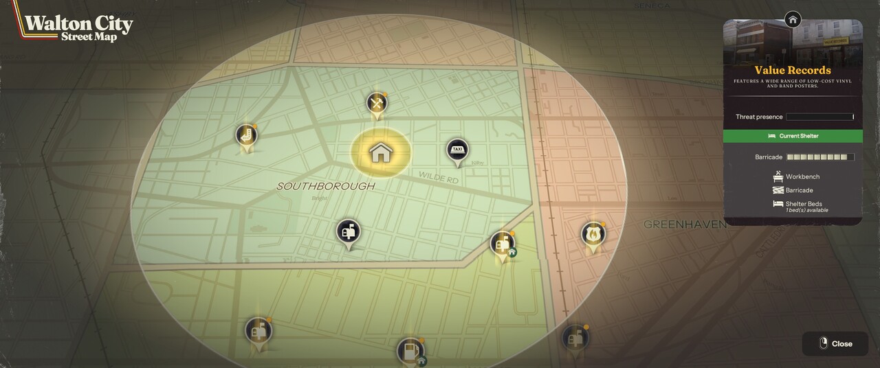 Egy menedékhelyen kezdünk, ami lehet lakóház, üzlet, benzinkút stb. Ebben kell kielégítenünk az alapvető szükségleteket (koszt, kvártély, biztonság) a túléléshez. Különféle munkapadokat tudunk eszkábálni, hogy azokon fegyvereket, egészségügyi ellátmányt, ételt készítsünk. Természetesen a craftoláshoz (és a munkapadok építéséhez is) gyűjtögetnünk kell. Ehhez a város különböző pontjait (jellemzően üzleteket, iskolákat, egyéb szolgáltatások telephelyeit) kell meglátogatnunk, hogy ellátmányt és felszerelést zsákmányoljunk. Egy-egy ilyen portyára tudunk magunkkal vinni többféle fegyvert, lockpicket, drótvágót, de a hátizsákunk mérete véges, szóval módjával érdemes felmálházni. Így is bőven előfordul majd, hogy ugyanarra a helyszínre kell visszatérnünk, hogy minden lootot el tudjunk hozni.