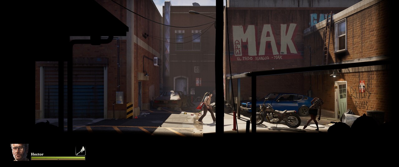 A látványvilágra visszatérve, hiába oldalnézetes a játék, teljesen 3D-s a környezet. A helyszínek nagyon autentikusak, nagy gondossággal és a részletekre figyelve alkották meg őket. Sajnos optimalizációról még nem beszélhetünk, DLSS nélkül alig 20 fps-t produkál nálam az Into the Dead, pedig elég combos gépem van. DLSS-t bekapcsolva már 60-70 fps közötti értéket kapok, ami bőven elég, de még így is botrányosan alacsony egy ilyen oldalnézetes, viszonylag statikus pályákkal operáló játékhoz.
