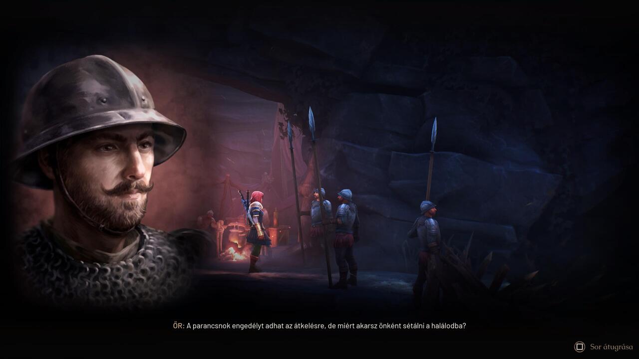 Nagyon sötét a felütés, a történet zordsága pedig nagyon illik a középkori fantasy külcsínhez, amit remek szöveg kísér. Ezt magyar nyelven is élvezhetjük, ami ízesre sikerült, érdekes volt így játszani a stuffot. Nagyon szép munkát végeztek a képi világon, mind a helyszínek mind a karakterek szépen animáltak. A hátterek mellett az előtérben is vannak sokszor dolgok, így egy mezőn átfutva nemcsak a magányosan kókadozó házikóban gyönyörködhetünk, hanem egy madárijesztő is belóg a képbe a fűszálak mellett. Ezek a vizuális ingerek hangulatossá teszik a játékot, és lényegében a fenti példa során nem is történik semmi, még harcolni sem fogunk.