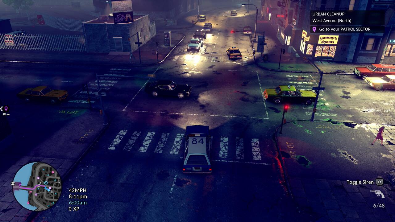 Feladatunk nem is lehet más, mint Averno City alvilágának szisztematikus felszámolása. Ám ez egy hosszú folyamat, amely rengeteg lépcsőből áll, közben pedig az olyan ügyekről sem szabad megfeledkezni, amelyek épp nem kötődnek egyik, az utcát uraló bűnbandához sem. Ezért minden munkanapunk elején eligazítást kapunk, ahol több lehetséges feladatkör közül tudunk választani. Mehetünk a város egyik kerületébe gyalogos járőrnek, egy másikba gyorshajtókra vadászni (nincs trafi, mész az autók mögött, és úgy írja ki a játék a sebességüket), de lehet parkolási szabálysértésekkel is foglalkozni. Idővel, ahogy lépkedünk felfelé a ranglétrán, további területek és lehetőségek is feloldódnak, illetve később akár egyedi beosztást is kreálhatunk magunknak. Van lehetőség például helikopteres támogatást nyújtani a talajszinten ügyködő bajtársaknak.