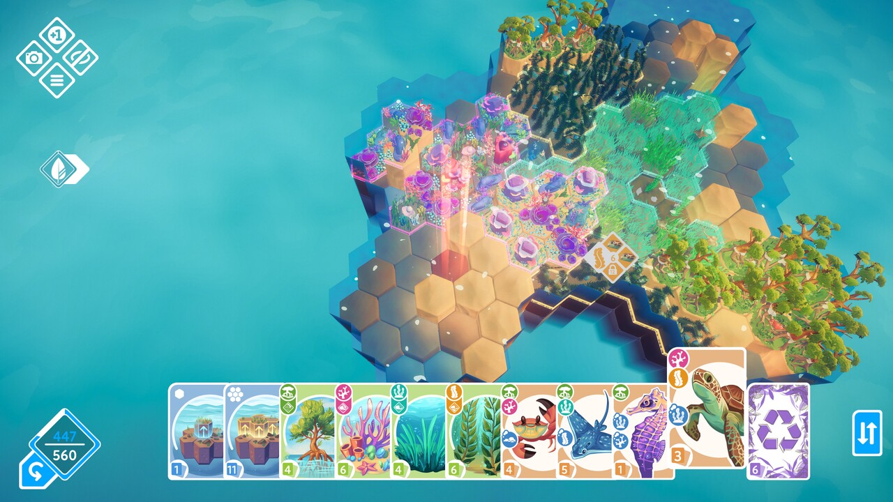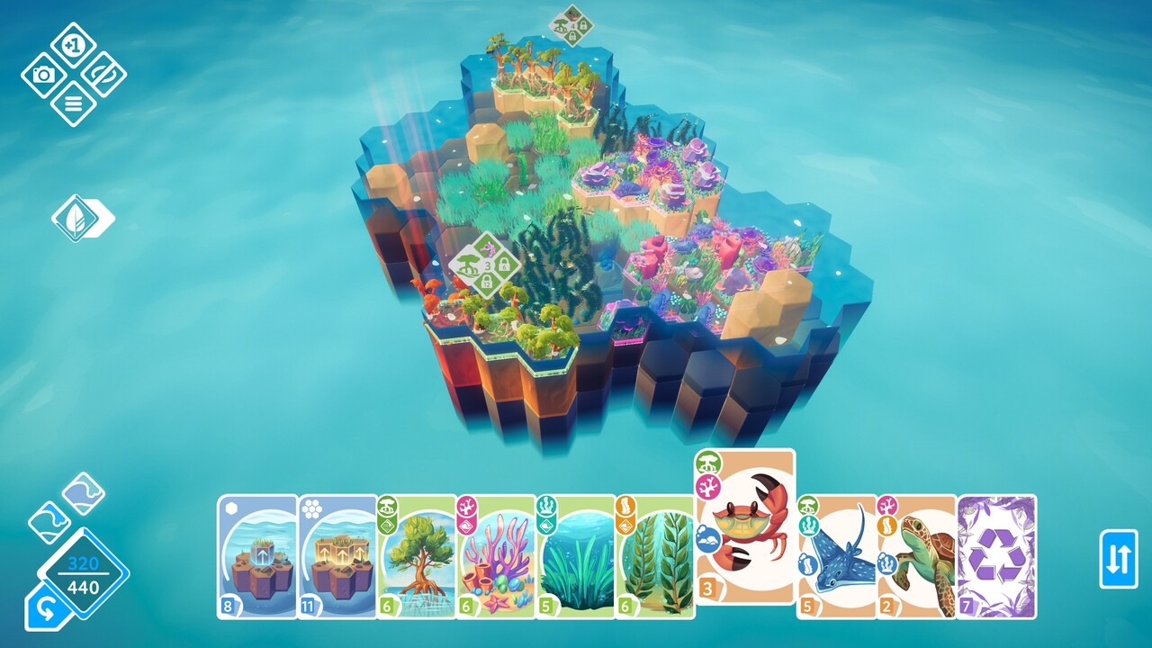 Ha kellően nagy egy egybefüggő növényzet (például korallzátony vagy erdő), akkor az ott honos állatokból is többet pakolhatunk le. Ha pedig elérünk egy bizonyos mennyiséget, akkor a növényzetből tájegység, állatokból pedig kolónia lesz, ezek pedig nagyságrendekkel több pontot hoznak a konyhára. Van lehetőségünk korlátozott mennyiségben vissza is vonni korábban elhelyezett növénylapkákat, hogy átvariálhassuk a terepet. Erre szükség is lehet, mert ha nem jól kalkulálunk, akkor idővel elfogynak a lapjaink, nem tudunk új növényeket vagy állatokat lehelyezni és kvázi a játék véget ér.