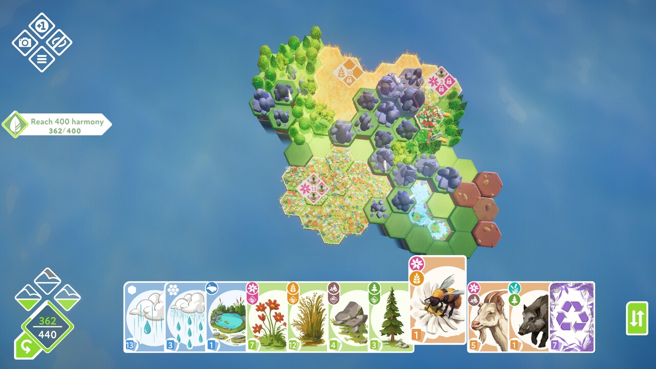 A Preserve tehát jelenleg négy eltérően működő biomot kínál, de ezekben van klasszikus, illetve puzzle játékmód is. Utóbbiban nem tudjuk mi bővíteni a játékteret, mint a klasszikus módban, illetve újabb kártyákat sem kapunk, így csak az eleve rendelkezésre álló készletből kell úgy pakolgatnunk, hogy elérjük a kitűzött pontszámot. Ezek mellett van még egy kreatív játékmód is, amelyben teljesen szabadon építkezhetünk. Minden biom minden alkotóeleme elérhető kötöttségek nélkül, így egészen változatos és meseszép környezeteket hozhatunk létre, a határ csak a türelmünk és a képzelőerőnk.