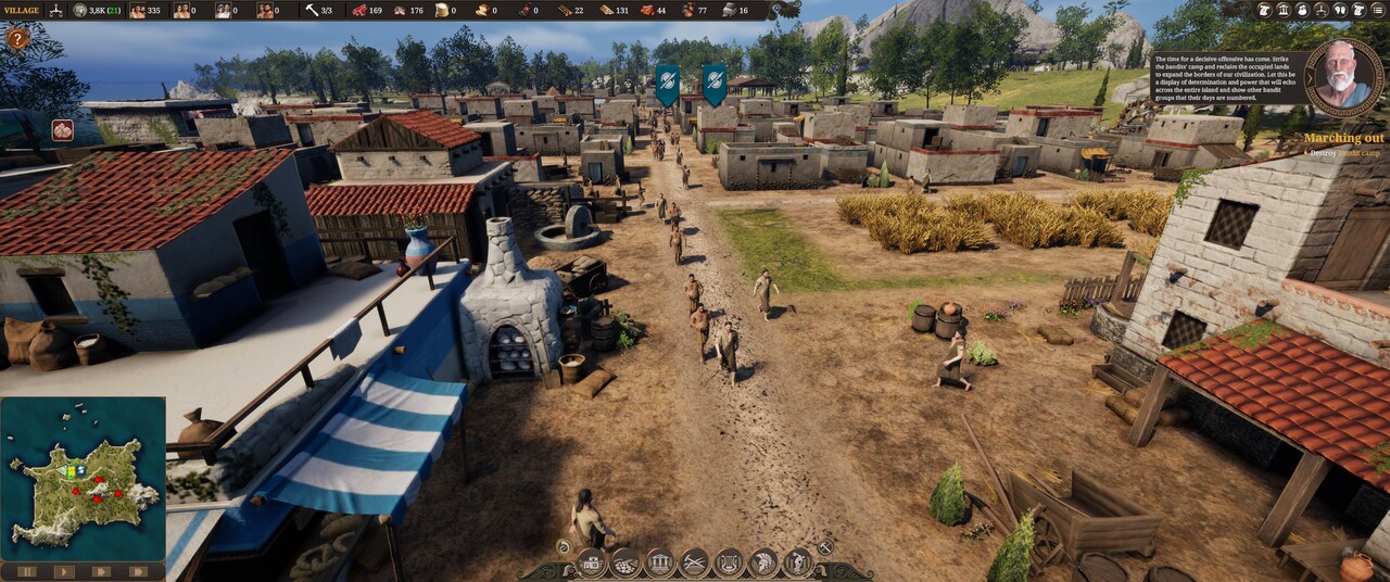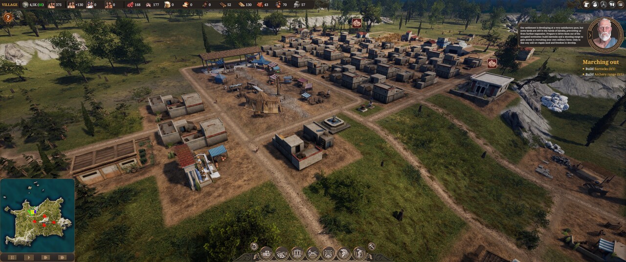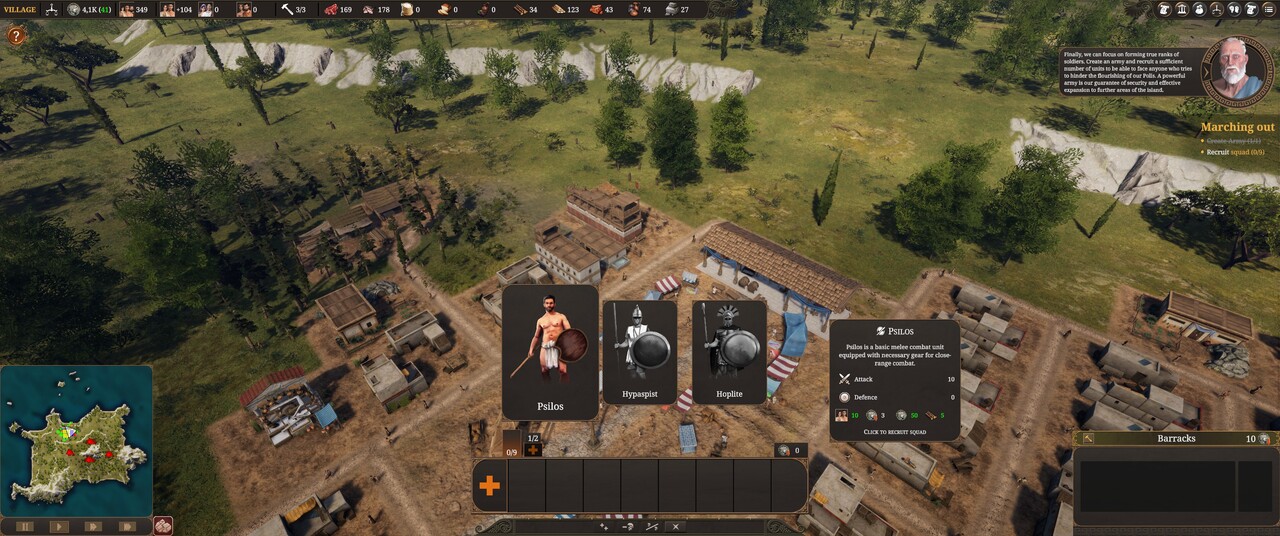 Manapság azonban ennyivel már nem lehet kiemelkedni a városépítős játékok garmadája közül, hiába lesz a setting az ókori Görögország vagy mondjuk a maja civilizáció. Szükség van valami olyan – nem feltétlenül új – mechanikára, ami kellően érdekessé tudja tenni az egyébként hamar monotonná váló játékmenetet. A hadsereg létrehozással a Builders of Greece sem találja fel a spanyolviaszt, láttunk már ilyet a Pioneers of Pagoniában és a Manor Lordsban is.