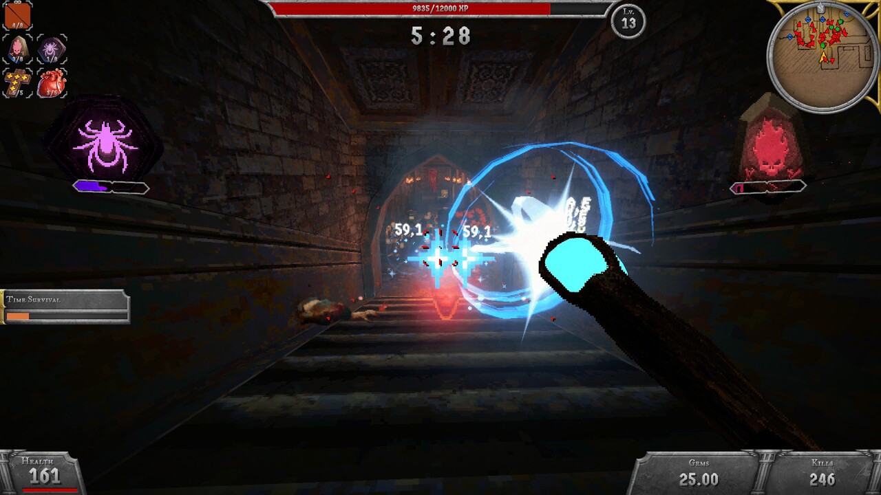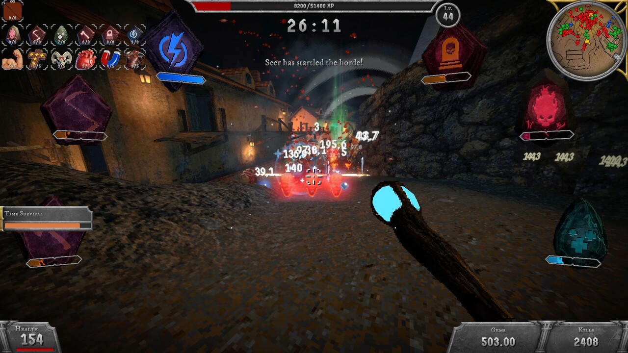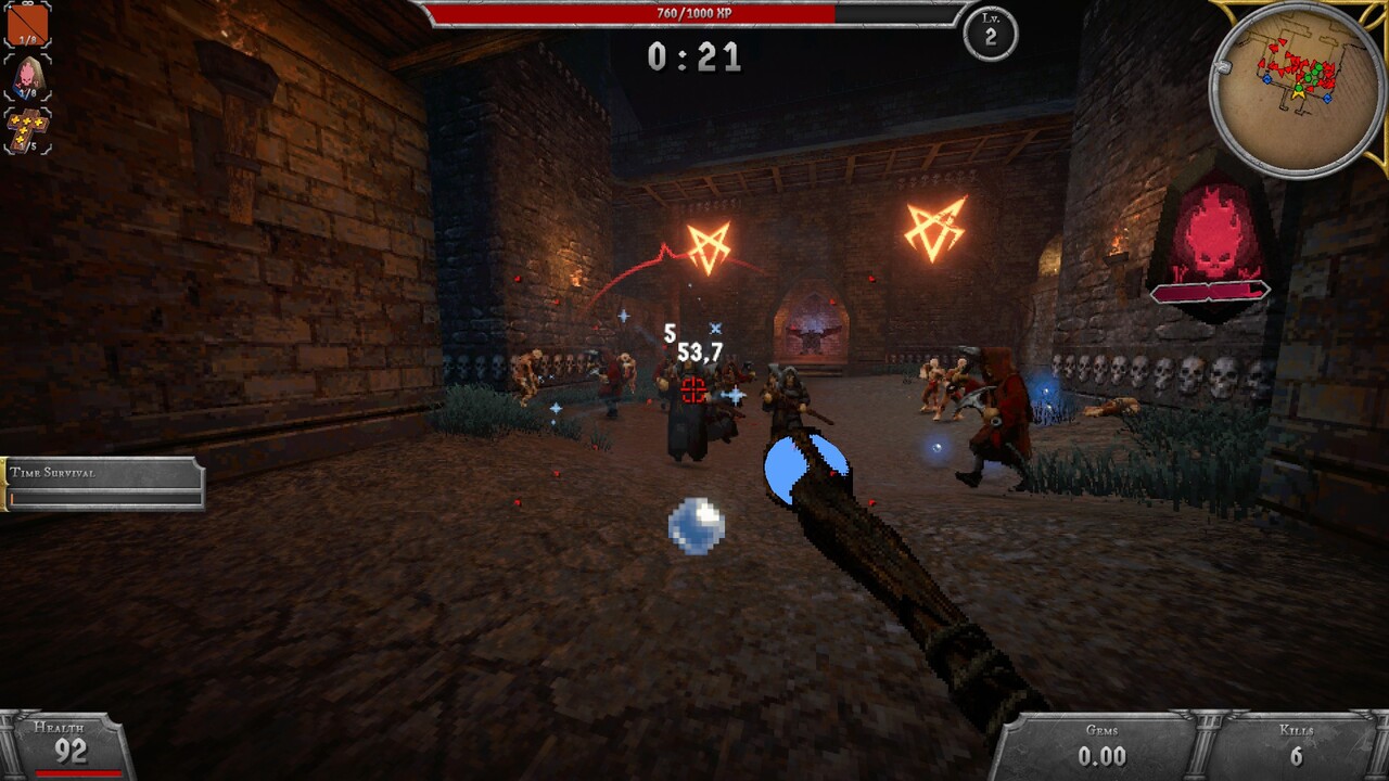 A különböző karakterek eltérő tulajdonságai és játékstílusa, a megnyitható játékelemek, az egyre növekedő kihívás tökéletesen eltalálják azokat az ingereket, amelyeket a Vampire Survivors is, sőt, ha valaki FPS-rajongó, és szerette az olyan klasszikusokat, mint a régi Build-motoros játékok, esetleg a Heretic, annál talán még jobban is működik. Úgy bő tíz-tizenöt óra erejéig.