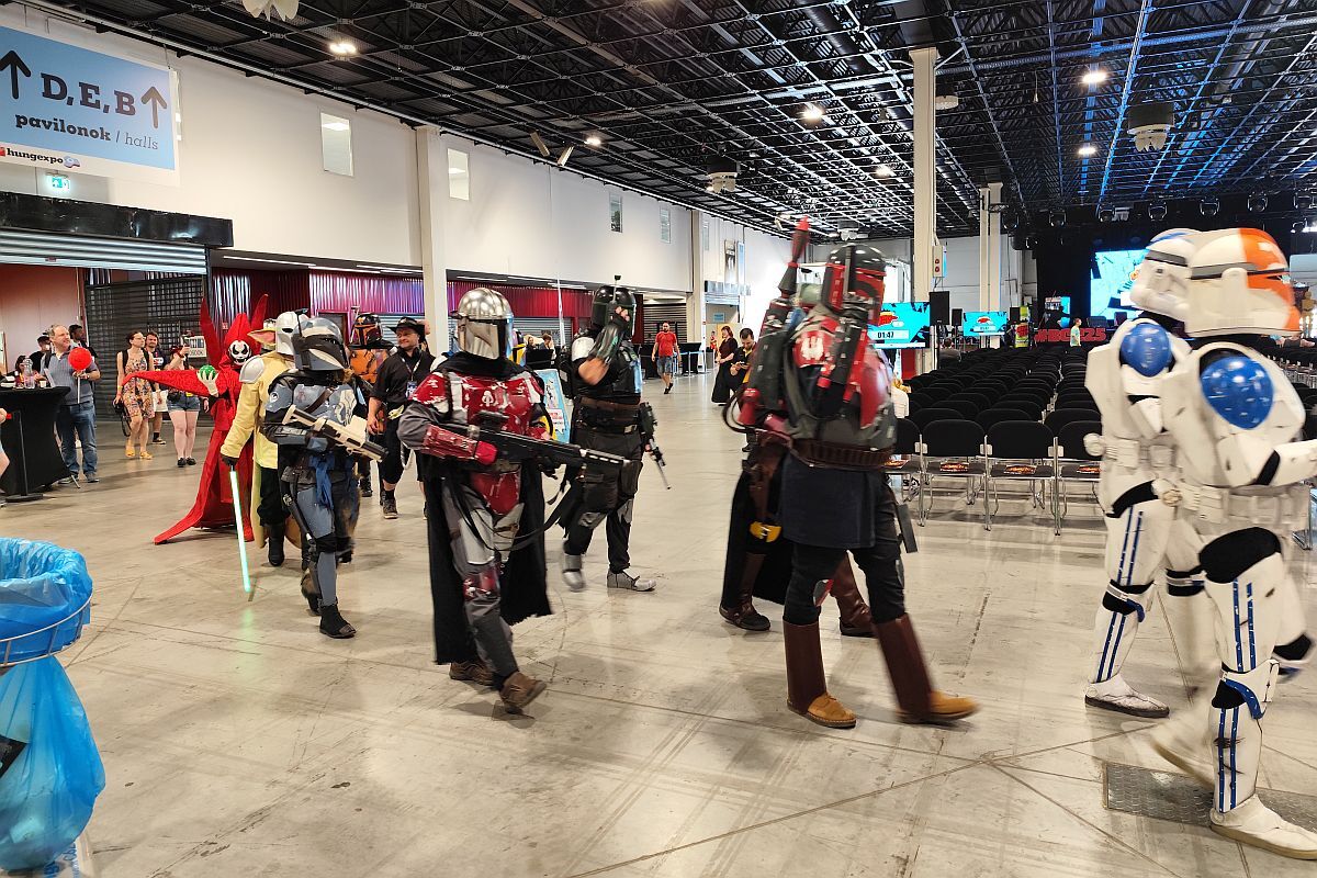 A LEGO szerelmesi is remek építményeken legeltethették a szemeiket, hiszen volt itt 4 méter magas láma, hatalmas Mario és Ninjago, külön részleg a szetteknek, Star Wars diorámák és más. A Csillagok háborúja amúgy is pörgött, rengetegen öltöztek be a világából pozitív vagy negatív karakternek. Vasárnap délelőtt egy rendes felvonulás keretében, zenével megspékelve vonultak át a csarnokokon hosszú perceken át, ami számomra meglapozta a vasárnap reggeli jó hangulatot.