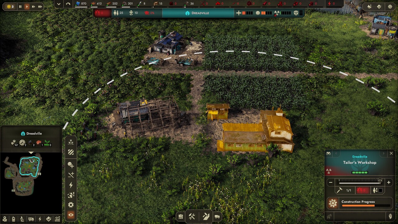 Maga a városépítés nem rejt nagy meglepetéseket, folyamatosan növekvő településünk populációját kell életben tartani és ellátni a létszükségletekkel, majd, ha azok megfelelőek, akkor törekedni a kényelemre és új települések létrehozására. Ebben ellenünk lesz a radioaktív világ, mint például szennyezett homokviharok vagy éppen kegyetlen szárazsághullámok. Ami számomra az igazi kihívást jelentette, az a szűkös terület és a növekvő népesség összeférhetetlenségéből akadt. Az autóbusszal érkezett 20 felnőtt igényeit egyszerű kielégíteni, de amikor már gyerekek kerülnek a képbe – akik persze nem dolgoznak, ez nem Frostpunk – a népesség gyors növekedésbe kezd, aminek fenntartása több élelembe, ruhába és vízbe kerül.