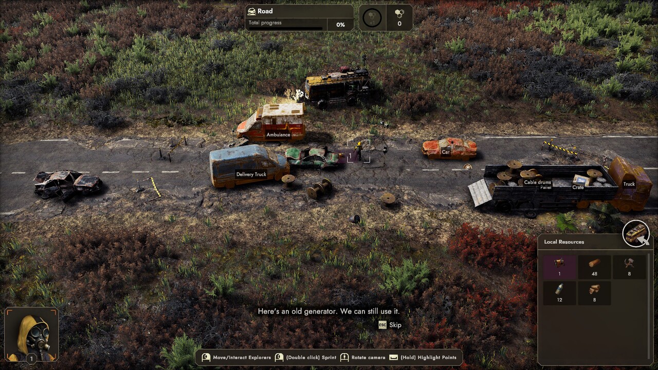 A városépítésen kívül visszaülhetünk strapabíró lakókocsinkba, és a vállalkozó kedvűek megfelelő védőfelszereléssel expedíciókba kezdhetnek. Ezek minjátékok, ahol egy karaktert irányítva fedezhetők fel épületek, romos gyárak vagy bármi, ami érdekesnek tűnik számunkra. Az apró logikai puzzle-k kimerülnek abban, hogy hova rakd a létrát vagy a tartalék generátort, nem kell semmi komolyra gondolni, de mégis jó kikapcsolódás a városépítés alternatívájaként. A kutatáshoz és fejlesztéshez szükséges pontok csak innen szerezhetőek be, így mindenképpen fontos része a fejlődésnek.