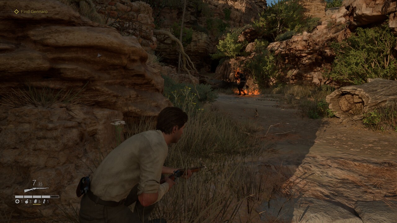 A tűzharcok során mindig legfeljebb kétféle fegyver lehet nálunk: egy pisztoly vagy lefűrészelt csövű puska, illetve egy karabély vagy puska. Fegyverből nem sok van a játékban, de érzésre azért így is elegendő a választék. Maga a harcrendszer nekem egy picit sutának érződött. Nem tudtam eldönteni, hogy szerencsétlen Enzo ennyire kancsal, a fegyverek hordanak ennyire félre, vagy ellenfeleimet faragták túl kemény fából, de gyakran közvetlen közelről is két-három golyó kell beléjük, mire méltóztatnak meghalni. Máskor meg ötven méterről lelőjük a legyet a kutya hátáról...
