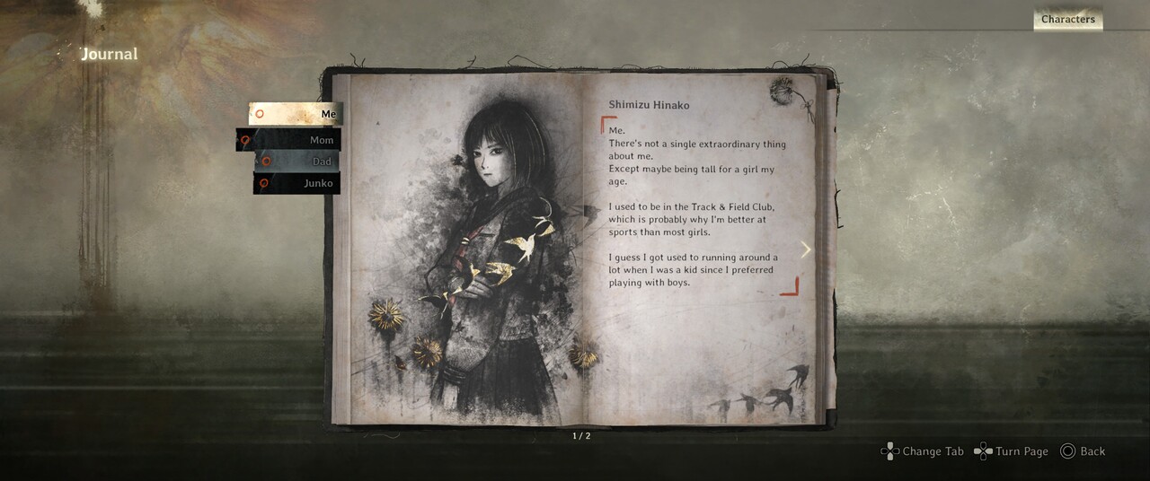 Emellett megsüvegelendő a vizuális történetmesélés is, ami kiemelkedően magas színvonalú – ha odafigyelünk a környezetünkre, rengeteg olyan dolgot találunk, ami vagy szükséges a játékban lévő rejtélyek megoldásához, vagy egyszerűen extra lore-t mesél el számunkra. Minden elhangzott információt a naplónkban tárolunk, ami szintén elég ötletes lett. Hinako különböző illusztrációkkal színesíti ezeket, legyen szó rejtvényekről, egy bizonyos személyről vagy egy helyszínről. Ennek kicsit mangás stílusa van, ami nekem személy szerint nagyon tetszett, és így teljesen hihetővé tette, hogy maga a főszereplő írja és rajzolja le ezeket a történéseket.