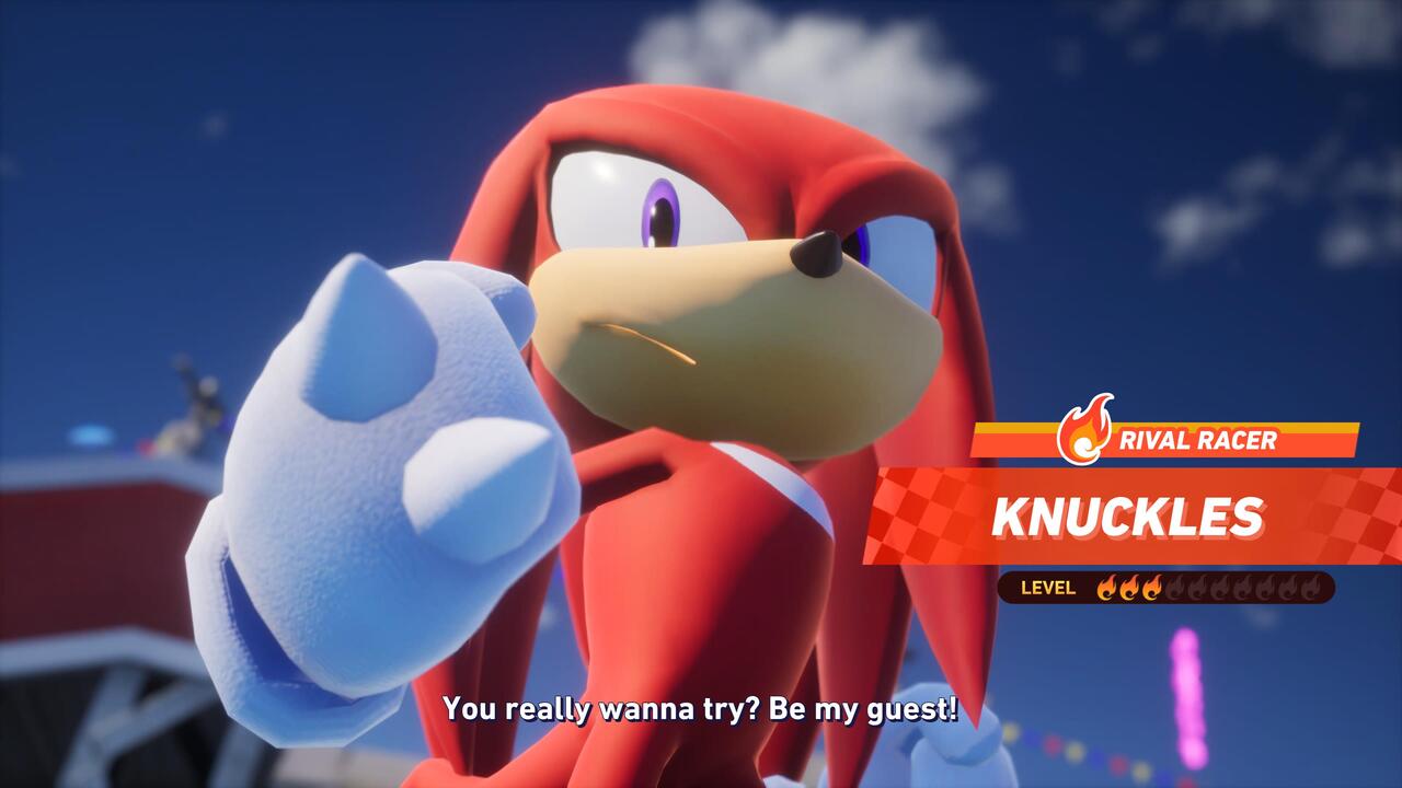 Innen jut eszembe: a Sonic franchise szinte minden szereplője képviselteti magát (Tails, Knuckles, Amy Rose stb.), de olyan vendégszereplők is akadnak vagy érkeznek (mert a SEGA tudatosan építgeti a játék jövőjét), akik azért nem megszokottak (Spongya Bob, Joker/Persona 5, Steve/Minecraft, Hatsune Miku, Mega Man). Összesen 12-en indulhatnak egy versenyben, ami ugyan kevesebb, mint a konkurens szériánál, de így is bőven elég egy jó játékélményhez. Közülük mindig lesz egy rivális, aki kicsit ügyesebb, mint a többiek, illetve kiemelten a leginkább legyőzendő ellenfél. Jópofa beszólások is alakulnak a versenyek közben a felek között, ami színesíti a hangulatot.