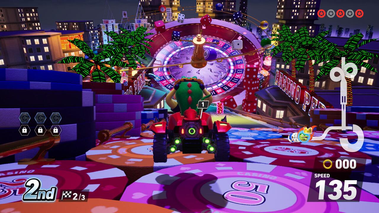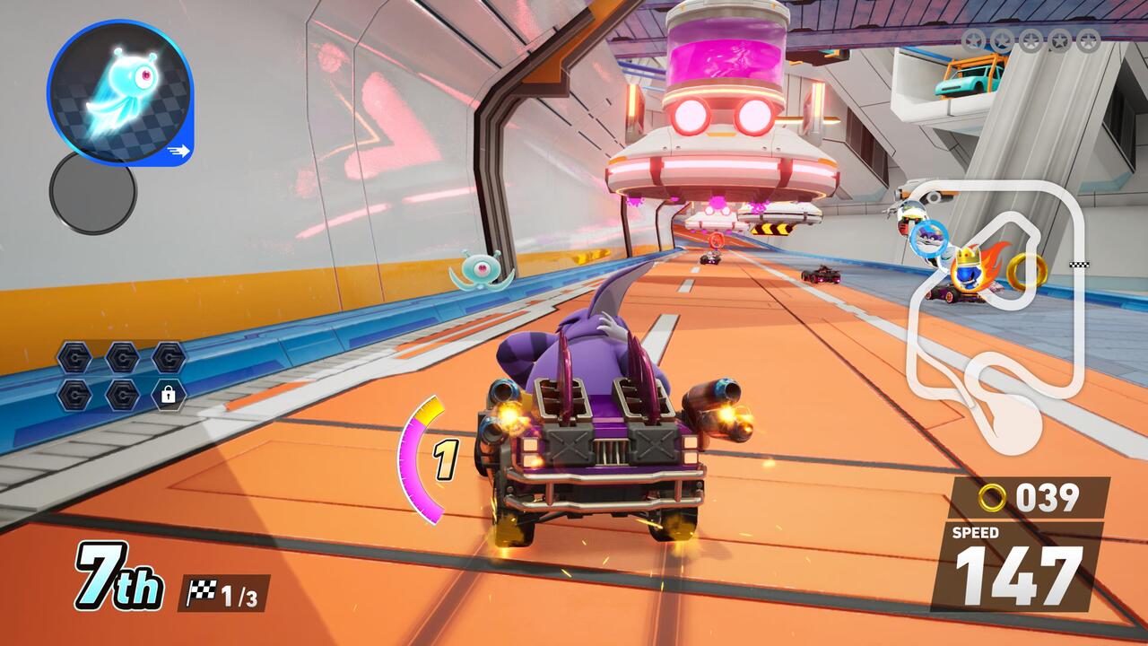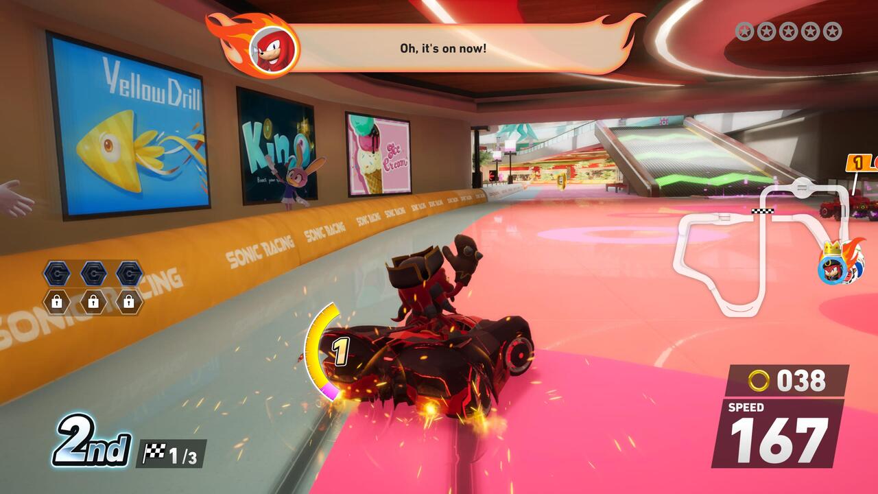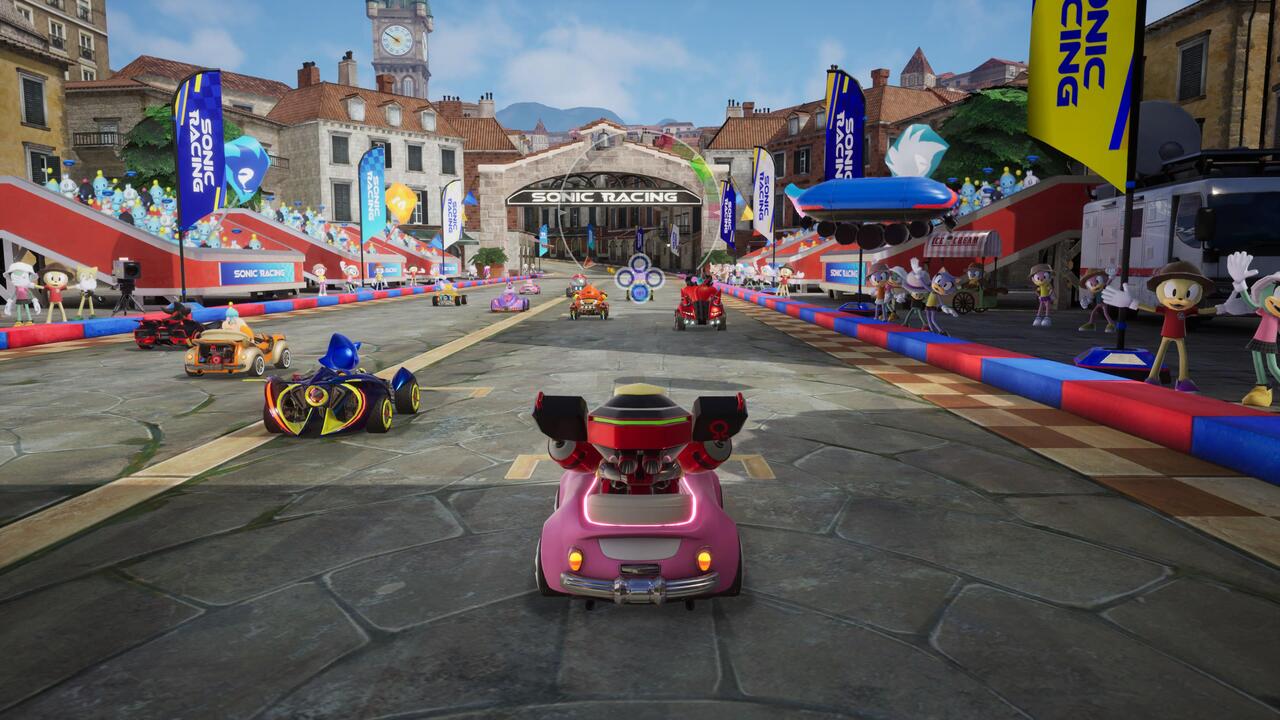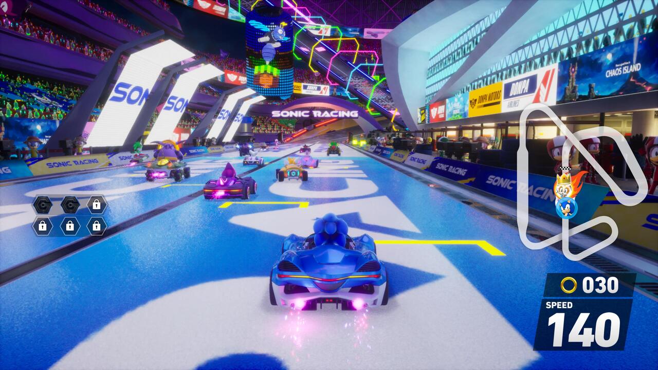 Ez azt jelentené, hogy a Sonic Racing CrossWorldsnek könnyű dolga van? Korántsem! Viszont a SEGA fejlesztői nagyon is odatették magukat, s talán a Sonic versenyjátékok legjobbját rakták össze, vagyis egy méltó vetélytársat Mariónak. Az új rész egyik alappillére a címadó CrossWorlds mechanika, ami azt jelenti, hogy a (szigorúan) háromkörös versenyek első etapjának a végén az aktuális első helyezett csavarhat egyet az izgalmakon. Eldöntheti ugyanis, hogy egy portálugrással két választható irányból merre haladjon tovább a futam (aztán az utolsó körre visszatérünk az eredetihez). Két teljesen másik pálya hívódik meg ilyenkor, és maga az effekt picikét emlékeztet a Ratchet & Clank: Rift Apart „nextgen seller” látványos térugrásaira.