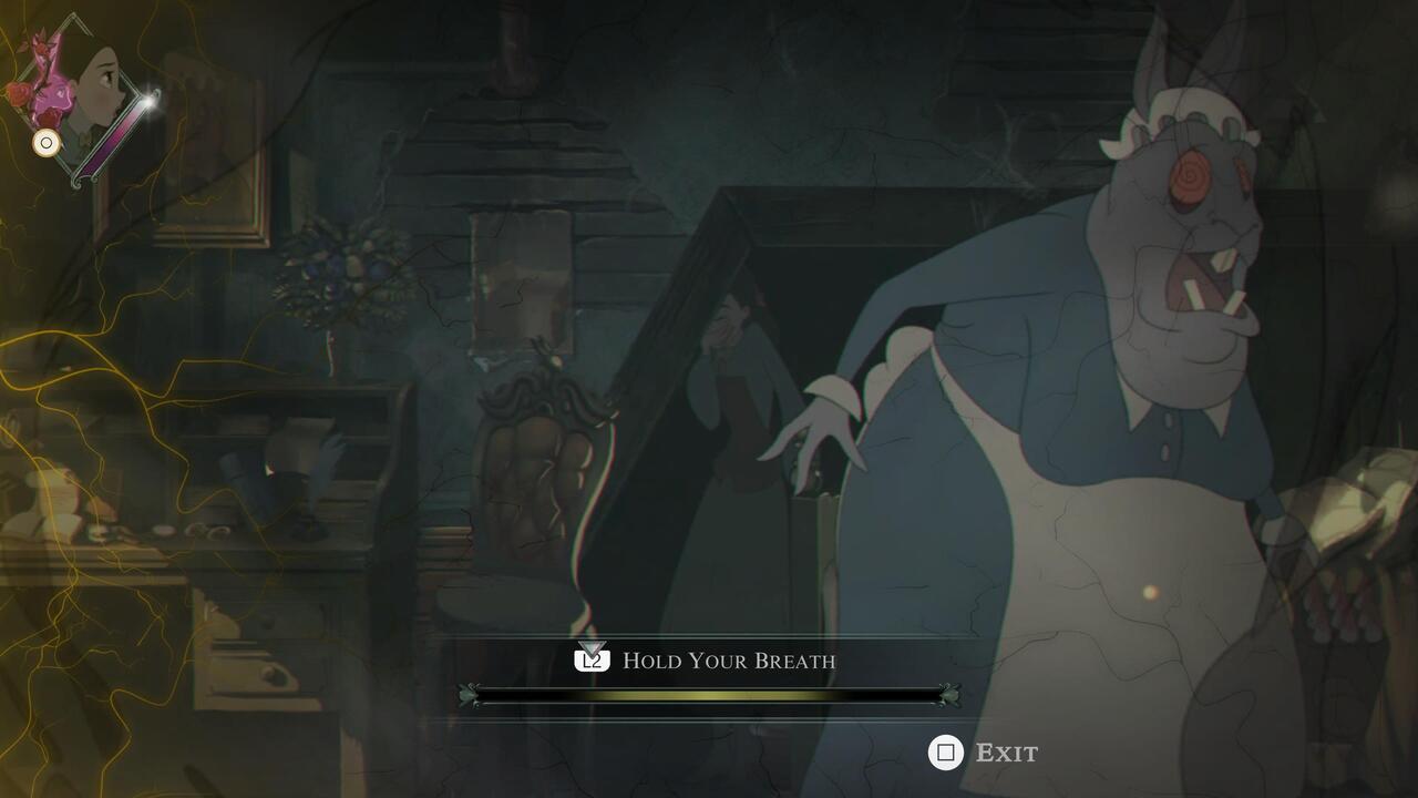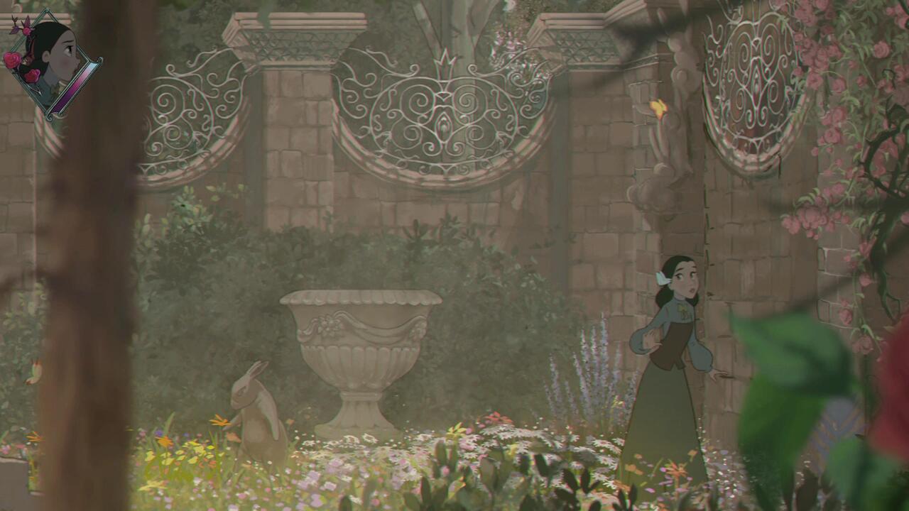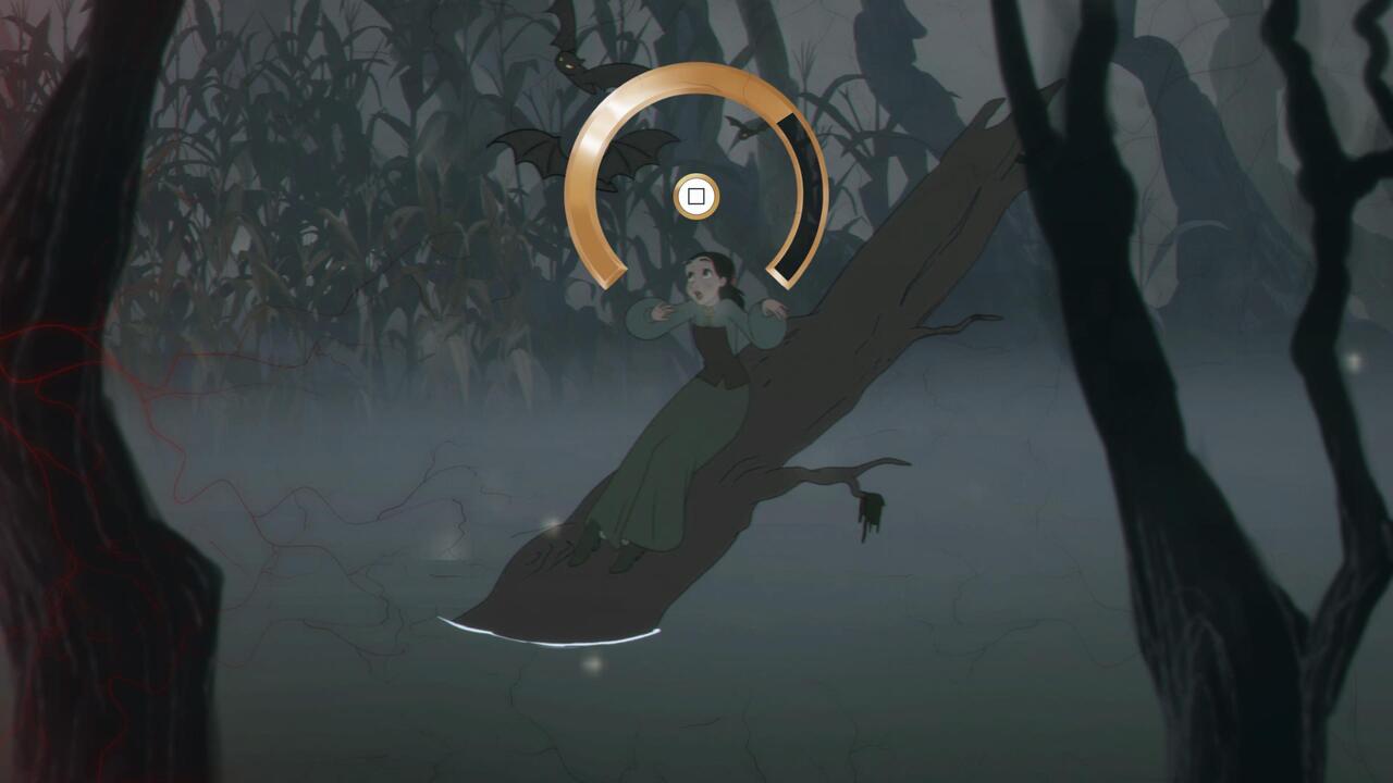 A játékmenet olyasmi, mintha fognánk a régi Clock Tower játékokat (vagy az új kiadást, a Clock Tower Rewindot), és ráhúznánk egy Disney-mesére – de tudjátok, a klasszikus félére, nem ezekre az új CGI-borzalmakra. 2D-s mozgástér áll rendelkezésünkre, ahol gyakran kapunk olyan szakaszokat, amikor lopakodnunk, rosszabb esetben pedig menekülnünk kell valami vagy valaki elől. Alapvetően ezzel nem is lenne gond, de itt jön be a képbe az, amit Chris Darril munkásságáról megemlítettem: mégpedig, hogy a jó ötletei rendre elvéreznek a kivitelezés tekintetében.