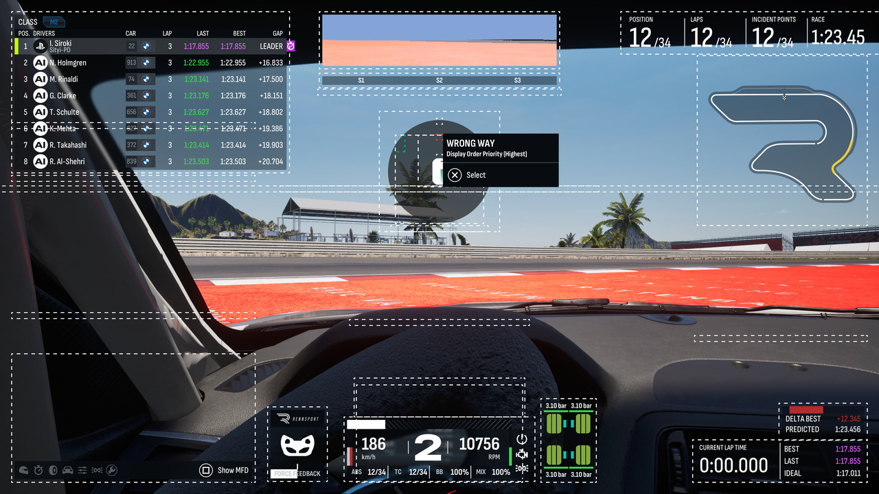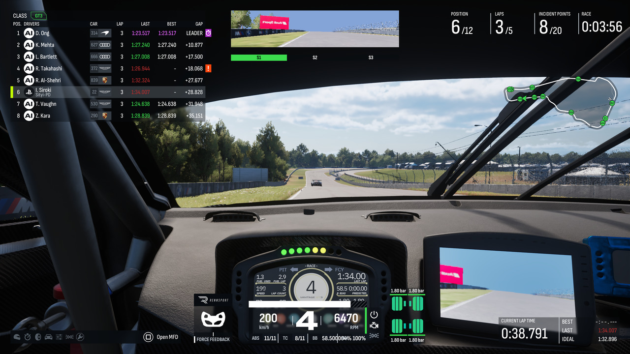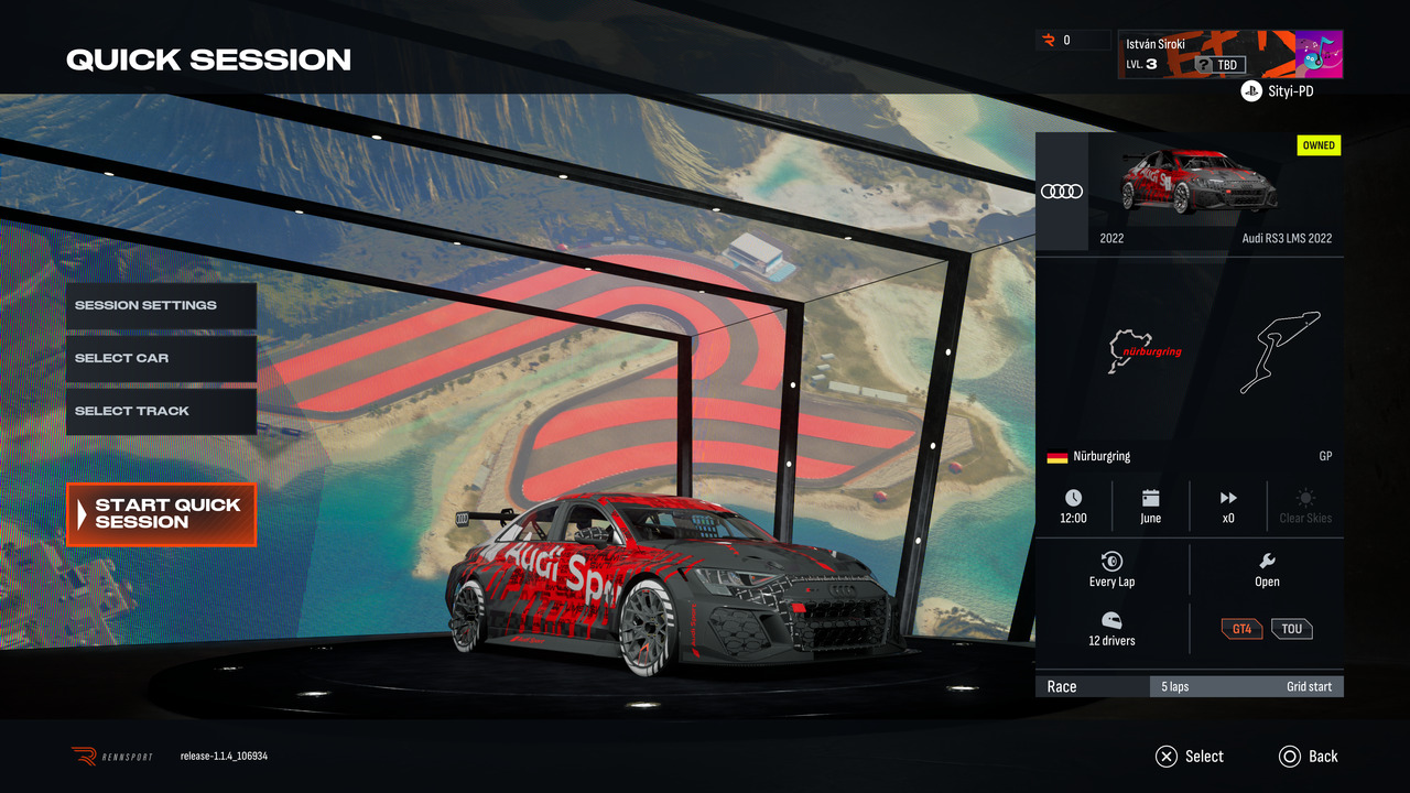 És ezt vágja agyon lényegében minden más... Olyan érzésem van, mintha a tartalomra és formára már nem maradt volna elég lelkesedés, pénz, vagy nem is tudom, mi – érezhetően szétesik a játék ezen a téren. Vagy félkész benyomást kelt. Az egy dolog, hogy a menü atom fapad, önmagában nem zavaró. Az, hogy az autó- és pályaválaszték kissé szegényes benyomást kelt, inkább aggasztó. És lehet azzal takarózni, hogy majd a modderek – a konzolos verziókon ez nem biztos, hogy segít. Ráadásul az autóknál is hiába tűnik úgy, mintha sok kategóriában versenyezhetnénk, valójában a GT3 az, ahol van érdemi választék, a többinél ilyen 1-2 modelles kínálat van csak, lényegében márkakupává alakítva az élményt. A pályák esetében is tudok morogni: tök jó, hogy ritkábban használt helyszínek is vannak (pl. Jeddah), de az, hogy a kitaláltakkal együtt is csak 12 karikán tudunk kergetőzni, az eléggé vérszegény – és ebből ráadásul egy egy szimpla 8-as alakú mémpálya.