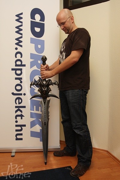 *A CD Projekt fenntartja a jogot, hogy amennyiben a jelentkezők száma vagy a kosztümök minősége elmarad a várakozásoktól, más, hasonló értékű nyereményt osszon ki. (A fotón a CD Projekt PR munkatársa tartja a kardot.)