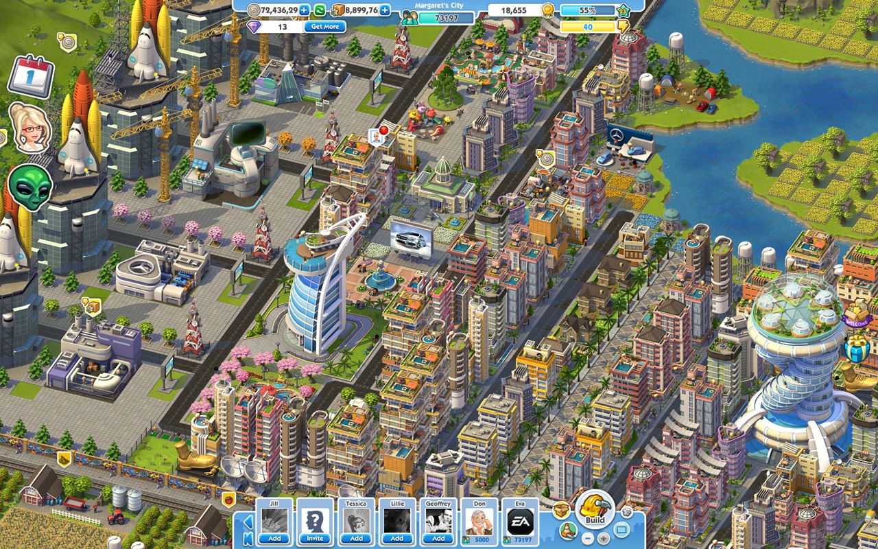 A SimCity Socialnek piszok klassz a grafikája, iszonyat hangulatosak a városok, jópofák a questek... csak kicsit túl sok benne a reklám ahhoz képest, hogy alapvetően fizetős (mármint ha veszel gyémántokat, amik nélkül nehezebb a fejlődés). Mondjuk én nem veszek, mert leszarom a sebességet, de a reklámok azoknak is megjelennek (mivel a játék részét képezik) akik fizetnek érte.