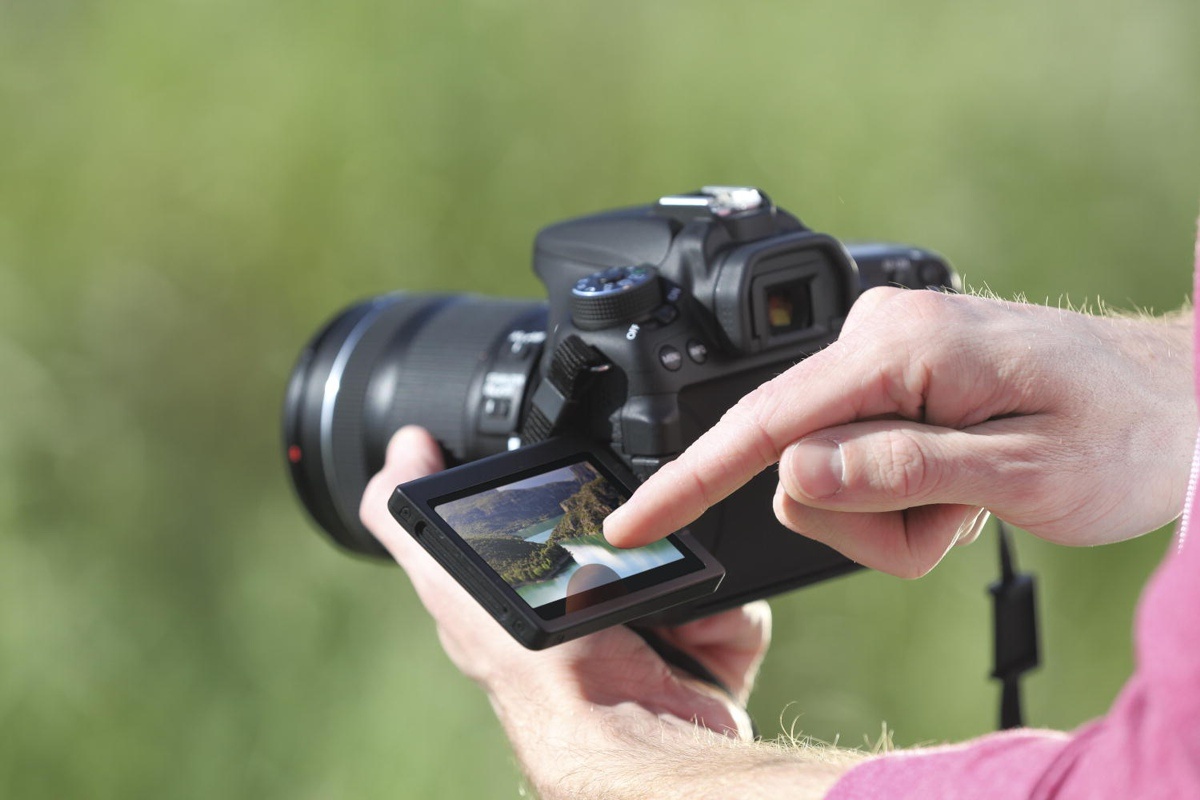 A 70D hátán egy 3 hüvelyk (7,7 cm) képátlójú, 1,04 millió képpontos LCD kijelzőt találunk, amely kihajtható és elforgatható, így igen változatos módon használhatjuk a kamerát, akár földre téve, akár fejünk felett is látva a kijelzőt. A kapacitív érintőképernyő a fényképezőgép vezérlésére is szolgál, és több ujjal is kezelhető. Ezt egészíti ki még a beépített wifi segítségével elérhető távoli vezérlés funkció: iOS vagy Android rendszerű okostelefonunkra vagy tabletünkre letöltve a Canon alkalmazását távirányítóként használhatjuk kütyünket, azon jelenik meg az élőkép és onnan lőhetünk fotókat (például természetfotózásnál lehet ez külön hasznos).