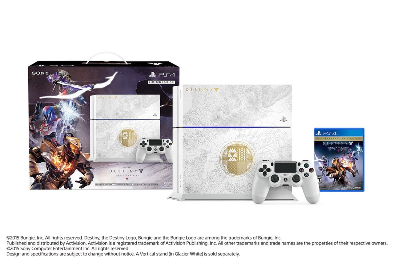 A Sony bejelentette, hogy új PlayStation 4 csomagot fognak piacra dobni a Destiny harmadik nagy kiegészítője, a The Taken King megjelenése alkalmából. A csomagban egy 500 GB-os, fehér PlayStation 4 lapul majd, amely exkluzív Destiny-s designt kapott. A konzolt egy galaxis térkép, egy Guardian címer és a Destiny logója díszíti, mellé pedig hozzá illő fehér DualShock 4 kontrollert kapunk. A Destiny: The Taken King’s Legendary Edition is ott rejtőzik majd a dobozban, ez a kiadás az alapjátékon túl az összes addig megjelenő kisebb-nagyobb DLC-t is tartalmazni fogja – természetesen köztük a The Taken Kinggel. Ez egyébként vadonatúj történetet, ehhez kapcsolódó új küldetéseket, valamint új többjátékos pályákat tartalmaz, de lesznek időszakosan PlayStation 4 exkluzív tartalmak is, amelyek csak később jelennek meg Xbox One-ra. A PlayStation 4 – Destiny Bundle tervezett áráról egyelőre nincsenek információk, de a premierjéről igen: a The Taken King DLC-vel egyszerre, szeptember 15-én kerül a boltokba.