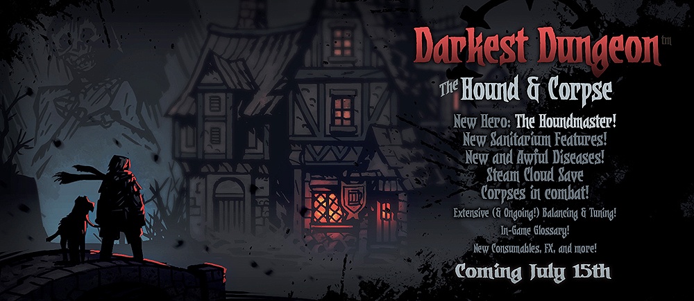 Hamarosan újabb frissítés érkezik a Red Hook Games szerepjátékához, a Darkes Dungeon korai változatához. Ebben új karakter csatlakozik a baljós katakombákat feltáró kis csapathoz, méghozzá a Houndmaster. A nevéből már sejthető, hogy nem egyedül érkezik, hanem hűséges négylábú társával együtt. Egyelőre nem sokat tudni az új szereplőről, ám az első híresztelések szerint egyfajta joker lesz, hiszen a frontvonalban és attól hátrább vonva is hatékonyan részt tud venni az ütközetekben. Az új csapattag mellett újabb betegségekre és átkokra is számíthatunk, de szerencsére az érem másik oldalán a szanatóriumi gyógyító lehetőségek is bővülni fognak. Emellett elérhetővé válik a Steam felhőalapú mentési rendszere is. Az új frissítés a tervek szerint július 15-én érkezik meg.