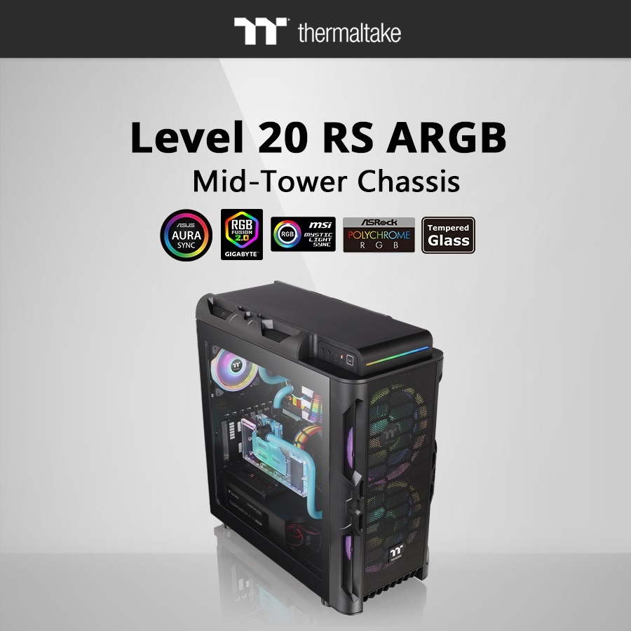 A Level 20 RS ARGB a Level 20 széria legújabb tagja, meglehetősen egyedi designt kapott. A felső panelt úgy tervezték meg, hogy kiemelkedjen picit, így az i/O portokat ügyesen az oldalába rejthették. Az előlapot háromrétegű szűrőre cserélték, amely mögött két 200 mm-es ARGB ventilátor dolgozik. A hátsó falon egy 120 mm-es ventilátor csatlakozik hozzájuk a jobb légáramlat érdekében. A ház belsejét mindkét oldalon edzett üveglapon keresztül csodálhatjuk meg.