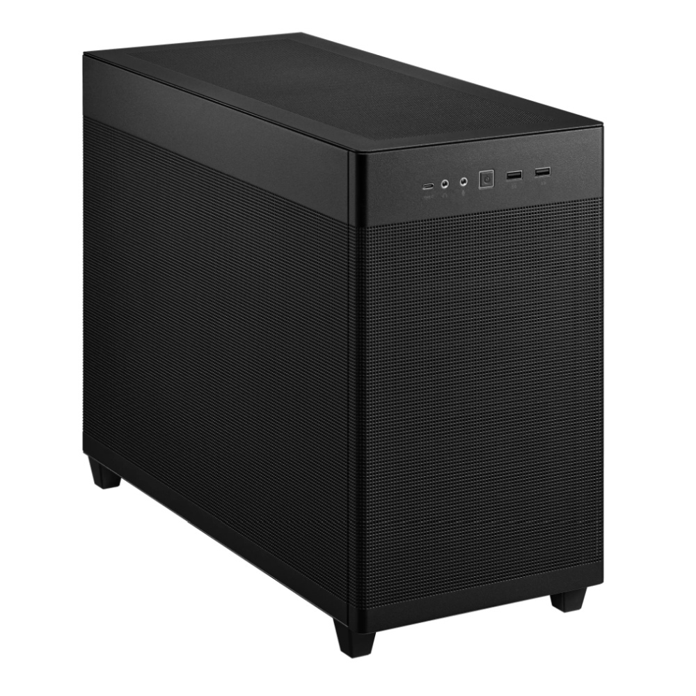 Maradjunk még a micro-ATX méretnél, és nézzük meg egy kicsit közelebbről a gyakorlatilag csupa lyuk ASUS Prime AP201-et! A szellőzéssel itt sincs gond, hála a több mint 57 ezer 1,5 mm átmérőjű lyuknak... A kompakt méret ellenére simán betehető 3 ventilátoros, azaz 360 mm hosszú radiátor, valamint 338 mm hosszú VGA-kártya is vígan elfér. A könnyebb szerelhetőséget segíti az is, hogy szerszámok nélkül vehetőek le az oldallapok, valamint az alaplapi tálca mellett kialakított kábelvezető csatorna. Ez a ház már inkább az asztalra kívánkozik, ugyanis az előlapra kivezetett csatlakozók (melyek közt egy Type-C is helyet kapott) előrefelé néznek.